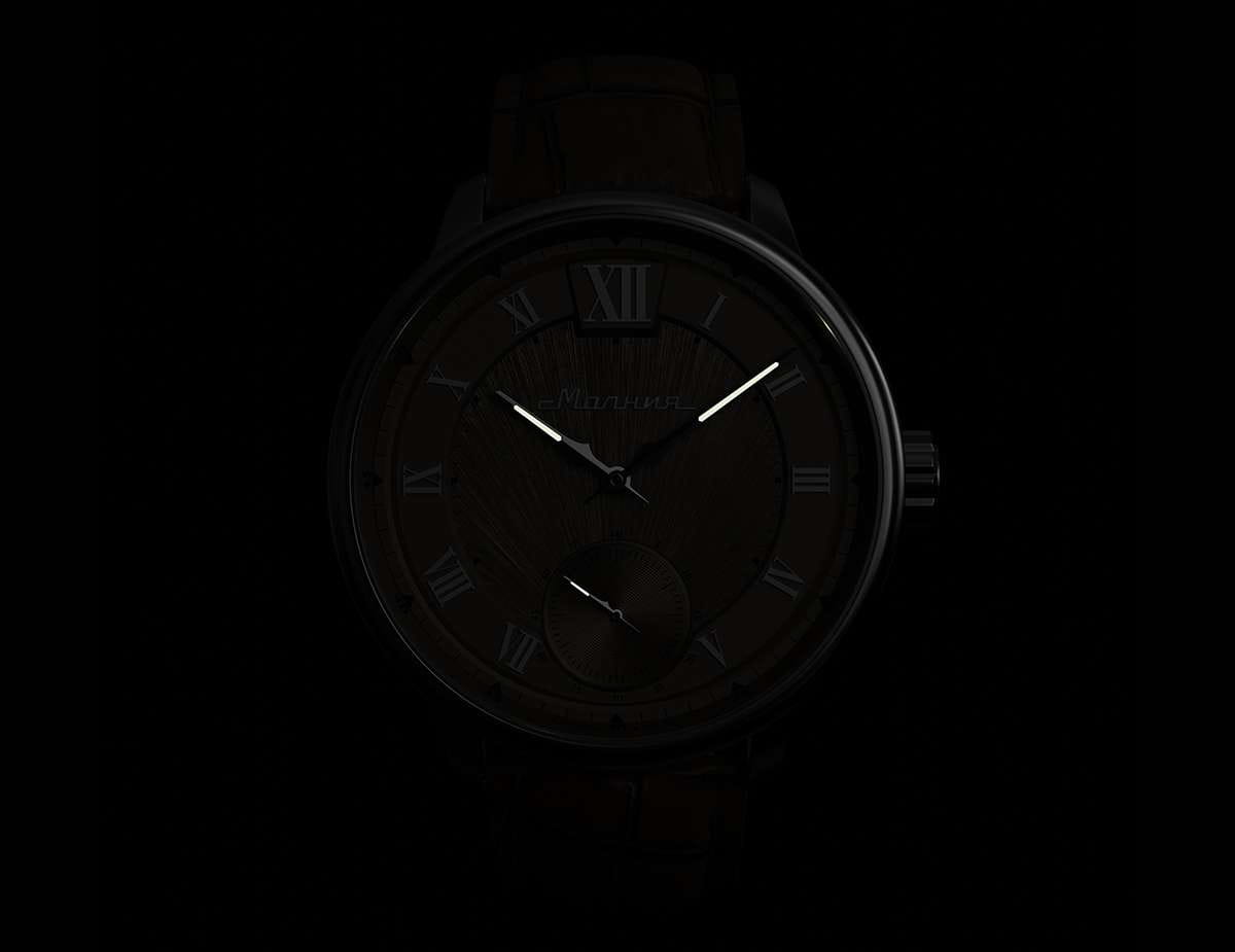 Мужские механические часы с ручным подзаводом — это аксессуар от легендарного бренда «МОЛНИЯ», созданный на Челябинском часовом заводе. Корпус диаметром 41 мм и толщиной 12 мм выполнен из нержавеющей стали 316L с зеркальной полировкой. БезельБезельВнешний ободок, закрепляющий стекло. В спортивных часах так называется поворотное кольцо с делениями на циферблате, выполняет роль таймера – замеряет отрезки времени на шкале. Неподвижный безель – элемент декора. Однонаправленно вращающийся безель на дайверских часах позволяет фиксировать моменты погружения и выныривания на поверхность. также выполнен из стали с зеркальной отделкой. Циферблат бежевый цвета оформлен римскими цифрами и стальными индексами. Малая секундная стрелка вынесена на позицию 9 часов. Циферблат защищён сапфировым стекломСапфировое стеклоПрочный и надёжный материал из кристалла сапфира синтетического происхождения, характеризующийся особой твёрдостью и устойчивостью к царапинам и повреждениям. толщиной 2,5 мм. Механизм — мануфактурный калибр 3603, собранный вручную, с запасом хода до 40 часов. Прозрачная задняя крышка позволяет наблюдать за работой механизма. Часы оснащены коричневым кожаным ремешком шириной 20 мм с раскладной застёжкойРаскладная застёжкаТакой тип застёжки используется только на браслетах из металла. Она никогда не раскрывается полностью, происходит разделение на 2 и более частей. Раскладывающая застёжка снизит вероятность потери часов к минимуму. и системой быстрой замены. Водонепроницаемость 100 м позволяет использовать часы для плавания и повседневного ношения. Идеальный выбор для тех, кто ценит российское качество и традиции.