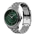 Мужские механические часы с ручным подзаводом — это аксессуар от легендарного бренда «МОЛНИЯ», созданный на Челябинском часовом заводе. Корпус диаметром 41 мм выполнен из нержавеющей стали 316L с зеркальной полировкой. БезельБезельВнешний ободок, закрепляющий стекло. В спортивных часах так называется поворотное кольцо с делениями на циферблате, выполняет роль таймера – замеряет отрезки времени на шкале. Неподвижный безель – элемент декора. Однонаправленно вращающийся безель на дайверских часах позволяет фиксировать моменты погружения и выныривания на поверхность. также выполнен из стали с зеркальной отделкой. Циферблат зелёного цвета оформлен индексами и стрелками. Малая секундная стрелка вынесена на позицию 9 часов. Циферблат защищён сапфировым стекломСапфировое стеклоПрочный и надёжный материал из кристалла сапфира синтетического происхождения, характеризующийся особой твёрдостью и устойчивостью к царапинам и повреждениям. толщиной 2 мм. Механизм — мануфактурный калибр 3603, собранный вручную, с запасом хода до 40 часов. Прозрачная задняя крышка позволяет наблюдать за работой механизма. Часы оснащены стальным браслетом с раскладной застёжкойРаскладная застёжкаТакой тип застёжки используется только на браслетах из металла. Она никогда не раскрывается полностью, происходит разделение на 2 и более частей. Раскладывающая застёжка снизит вероятность потери часов к минимуму. с кнопочным открытием и системой быстрой замены. Водонепроницаемость 50 м позволяет использовать часы в повседневных условиях. Идеальный выбор для тех, кто ценит российское качество и традиции.