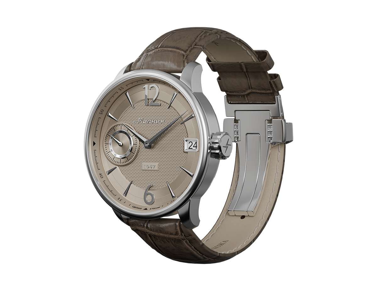Мужские механические часы с ручным подзаводом — это аксессуар от легендарного бренда «МОЛНИЯ», созданный на Челябинском часовом заводе. Корпус диаметром 41 мм выполнен из нержавеющей стали 316L с зеркальной полировкой. Циферблат бежевого цвета оформлен арабскими цифрами и стальными индексами. Малая секундная стрелка вынесена на позицию 9 часов, окошко даты расположено в положении 3 часов. Циферблат защищён сапфировым стекломСапфировое стеклоПрочный и надёжный материал из кристалла сапфира синтетического происхождения, характеризующийся особой твёрдостью и устойчивостью к царапинам и повреждениям.. Механизм — мануфактурный калибр 3605, собранный вручную, с запасом хода до 40 часов. Прозрачная задняя крышка позволяет наблюдать за работой механизма. Часы оснащены кожаным ремешком коричневого цвета с раскладной застёжкойРаскладная застёжкаТакой тип застёжки используется только на браслетах из металла. Она никогда не раскрывается полностью, происходит разделение на 2 и более частей. Раскладывающая застёжка снизит вероятность потери часов к минимуму. и системой быстрой замены. Водонепроницаемость 100 м позволяет использовать часы для плавания и повседневного ношения. Идеальный выбор для тех, кто ценит российское качество и традиции.