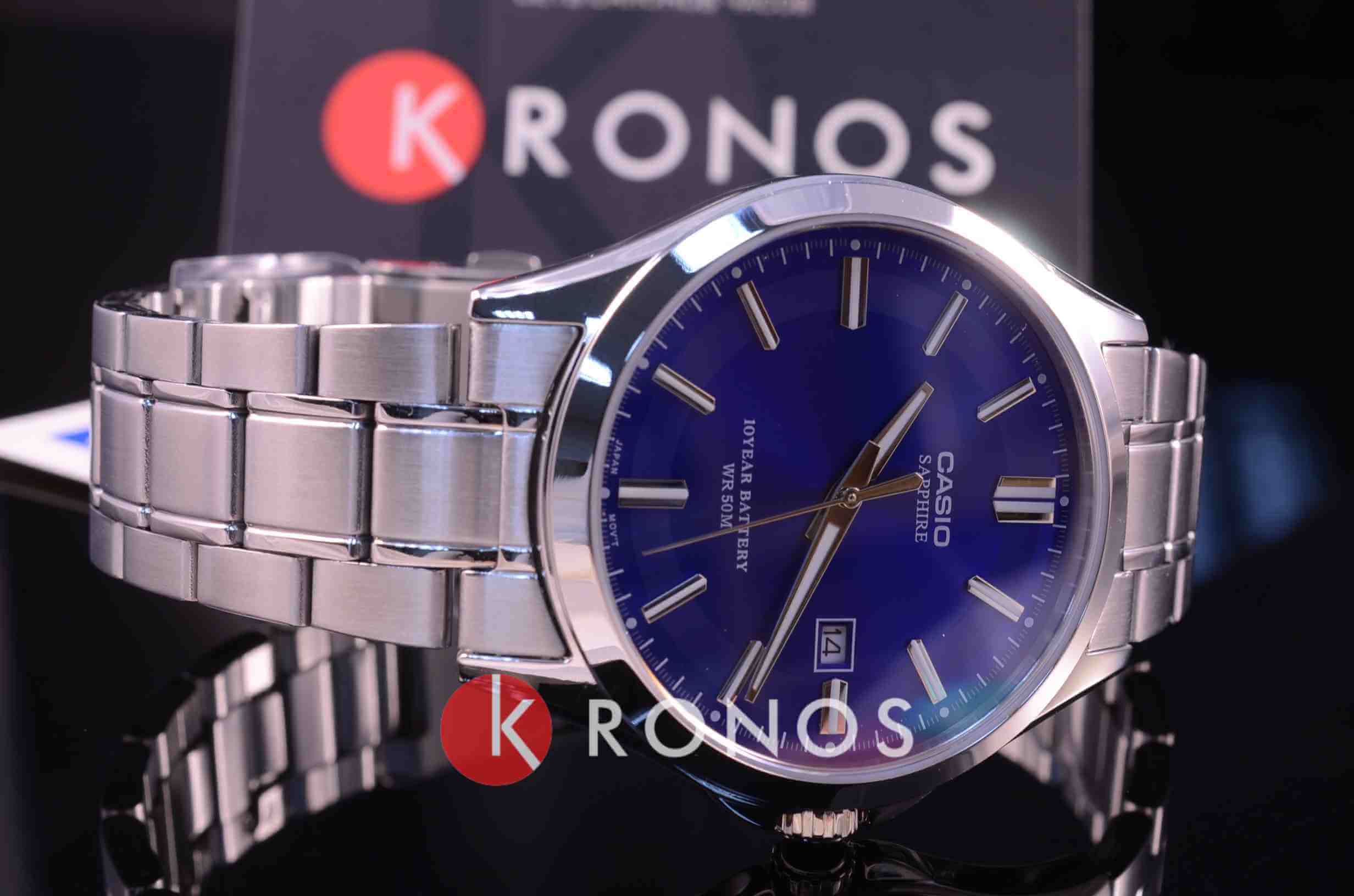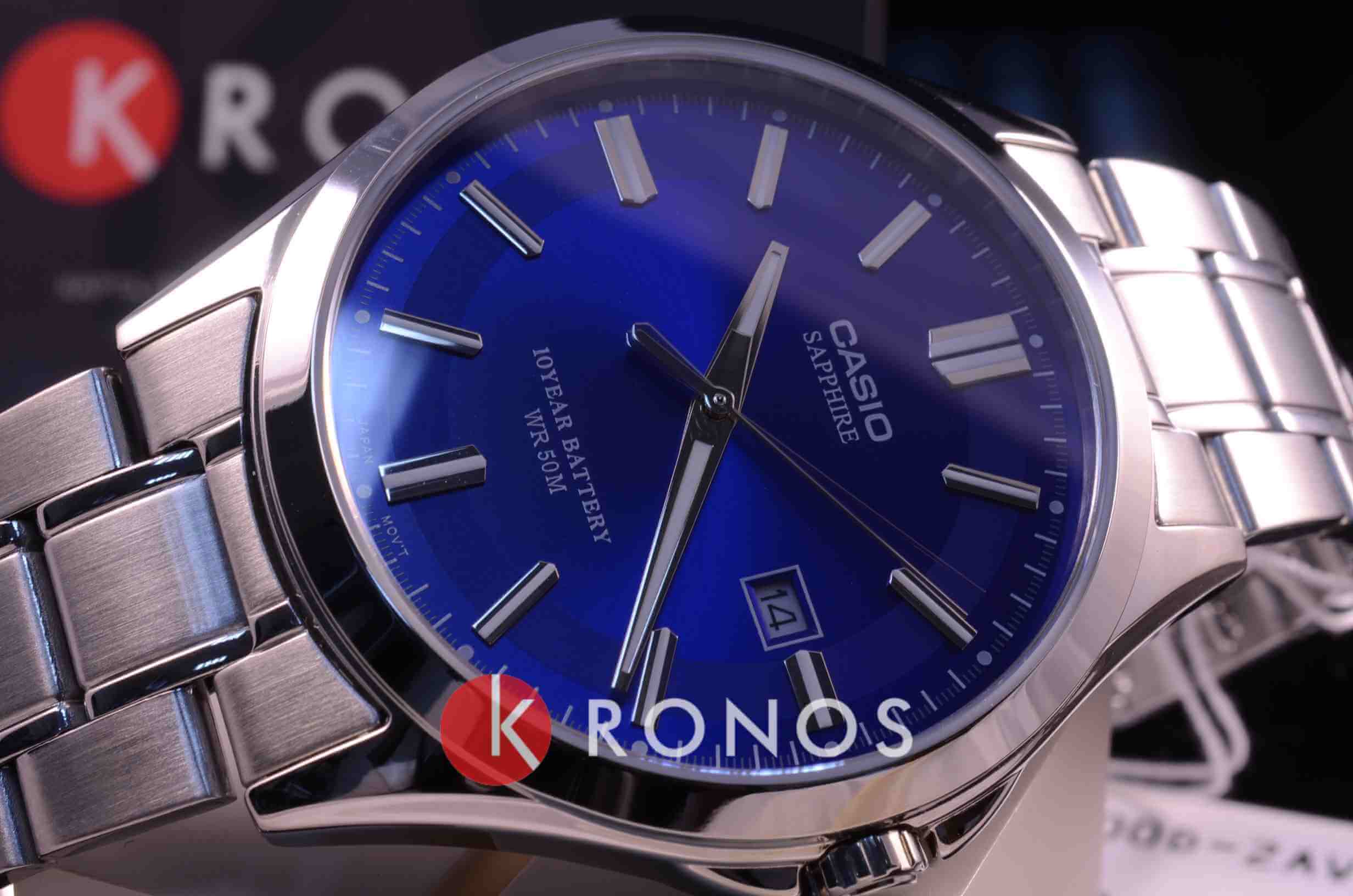 Японские мужские кварцевые часы с сапфировым стекломСапфировое стеклоПрочный и надёжный материал из кристалла сапфира синтетического происхождения, характеризующийся особой твёрдостью и устойчивостью к царапинам и повреждениям. Casio Collection MTS-100D-2A, кварцевый механизм с высокой точностью. Корпус и барслет часов изготовлены из нержавеющей. Подсветка NeobriteПодсветка NeobriteИспользование светонакопительных составов на основе сульфида цинка или алюмината стронция, яркий свет можно наблюдать на протяжении 6-10 часов после «зарядки» часов около источника света. обеспечивает длительное послесвечение в темноте даже после кратковременного нахождения на свету. Окошко даты находится в положении 3 часа. Батарея рассчитана на 10 лет. Заводная головка с защитой. Задняя крышка с винтовым фиксатором. Класс водозащиты: 50 метров, позволит защитить корпус от случайных брызг или капель дождя. Стальной браслет на раскладной застёжкеРаскладная застёжкаТакой тип застёжки используется только на браслетах из металла. Она никогда не раскрывается полностью, происходит разделение на 2 и более частей. Раскладывающая застёжка снизит вероятность потери часов к минимуму..