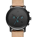 Мужские кварцевые часы-хронографХронографФункция позволяет измерять отрезки времени с особой точностью: часы, минуты, секунды. Верным признаком хронографа является наличие на циферблате 3 дополнительных окошек-счётчиков. с секундомеромСекундомерСекундоме́р — прибор, способный измерять интервалы времени с точностью до долей секунды. MVMT D-MC01GML – лаконичная красота и изысканная элегантность. Оригинальная модель с классическим оформлением станет превосходным завершением образа, наделив его индивидуальным характером. Корпус выполнен из нержавеющей стали с IP-покрытиемIP-покрытиеМетод ионного напыления. Демонстрирует повышенную устойчивость к истиранию, окислению и химическим веществам. Под воздействием высокого давления и температуры около 1500°C молекулы металла надёжно соединяются с частицами корпуса часов. черного цвета, диаметром 45 мм и толщиной 12 мм, что обеспечивает долговечность и надежность. Закаленное минеральное стеклоМинеральное стеклоМинеральное стекло представляет собой искусственно выращенный минерал кварца. Такое стекло отличается особой устойчивостью к повреждениям и царапинам. Уступает по некоторым качествам сапфировому стеклу. защищает циферблат от царапин. Кожаный ремешок на стандартной застёжке обеспечивает комфортное ношение. Водозащита 50 метров позволит защитить корпус от случайных брызг или капель дождя. Рифленая заводная головка с защитой. Это аксессуар для мужчины, который ценит классический стиль и функциональность.