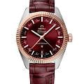 Sedna™. На задней крышке - медальон Центральной обсерватории, помещенный в устойчивое к царапинам сапфировое стеклоСапфировое стеклоПрочный и надёжный материал из кристалла сапфира синтетического происхождения, характеризующийся особой твёрдостью и устойчивостью к царапинам и повреждениям.. Бордовый циферблат «Pie Pan» с солнечными мазками напоминает первую модель 1952 года Constellation. Каждая из его граней включает месяц года в соответствии с функцией годового календаряВечный календарьКлассическое часовое усложнение, представляющее собой календарь, рассчитанный на несколько лет вперёд (стандартно – до 2099 года). Определяет текущую дату, день недели, месяц.. Звезда Constellation и логотип OMEGA выполнены из золота 18 карат18-каратное золотоОбозначение по каратной системе пробирования, оно показывает, сколько драгоценного металла содержится в изделии. 18 карат - в составе 75% чистого золота, соответствует 750 пробе.
