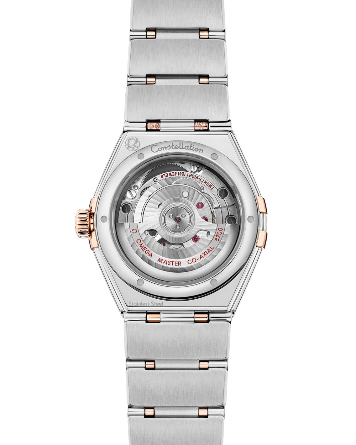 Sedna™, а также бриллиантовые метки в золотых оправах, сверкающие как далекие галактики. Часы завершаются интегрированным браслетом с инновационной системой микроподгонки, а их космической душой выступает коаксиальный хронометр OMEGA Master Chronometer 8700, чье совершенство раскрывается через кристально чистое сапфировое стеклоСапфировое стеклоПрочный и надёжный материал из кристалла сапфира синтетического происхождения, характеризующийся особой твёрдостью и устойчивостью к царапинам и повреждениям. задней крышки.