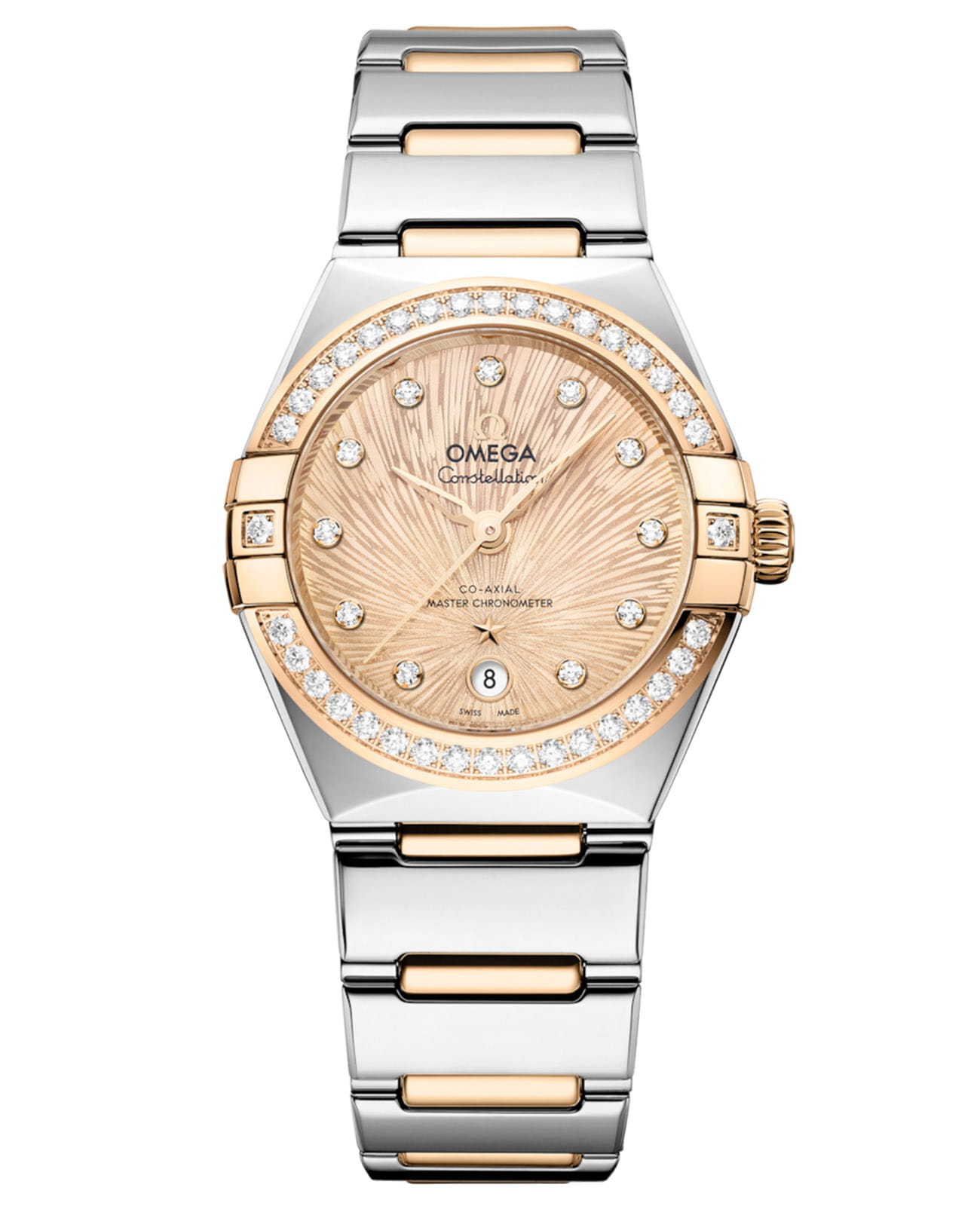 Moonshine™, а также россыпь бриллиантов в оправах из того же благородного металла, сверкающих как далекие созвездия. Часы завершаются интегрированным браслетом с инновационной системой микроподгонки, а их космическую душу составляет коаксиальный хронометр OMEGA Master Chronometer 8700, чье совершенство можно рассмотреть сквозь кристально прозрачное сапфировое стеклоСапфировое стеклоПрочный и надёжный материал из кристалла сапфира синтетического происхождения, характеризующийся особой твёрдостью и устойчивостью к царапинам и повреждениям. задней крышки.