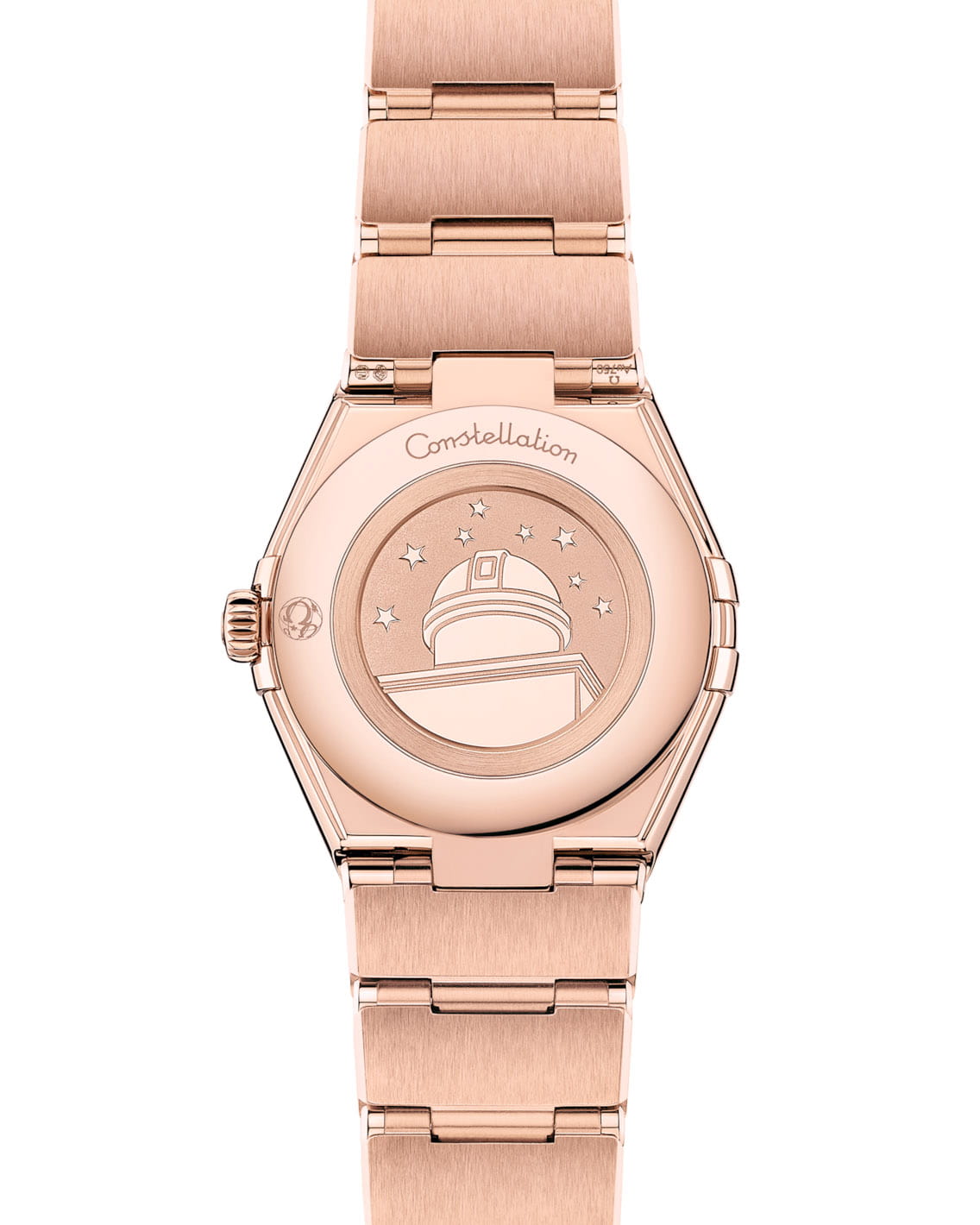 Часы OMEGA Constellation, словно частица ночного неба, застывшая в золоте, воплощают космическую элегантность в своем узнаваемом корпусе с плавными полукруглыми гранями и зеркальными скобами, напоминающими отблески далеких звезд. Эта изысканная 28-миллиметровая модель из 18-каратного золота18-каратное золотоОбозначение по каратной системе пробирования, оно показывает, сколько драгоценного металла содержится в изделии. 18 карат - в составе 75% чистого золота, соответствует 750 пробе.