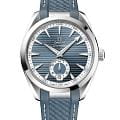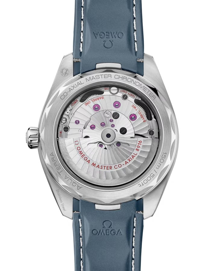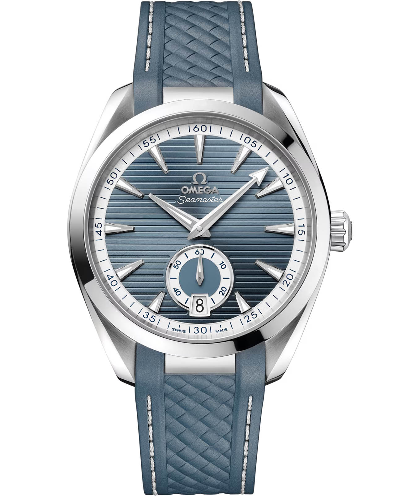 Мужские наручные часы Omega Seamaster Aqua Terra выполнены в корпусе из нержавеющей стали диаметром 41 мм и толщиной 13,2 мм. Водозащита — 15 АТМ (150 метров) , что позволяет использовать их в воде. Циферблат с горизонтальным узором «тиковое дерево» имеет окошко даты в положении 6 часов и дополнительный циферблат малой секундной стрелки. Стрелки и индексы с белым люминесцентным покрытиемЛюминесцентное покрытиеПозволяет считывать показания времени в темноте. Производители наносят на стрелки, часовые индексы, безель или поверхность циферблата светонакопительный состав, дающий холодное свечение. обеспечивают отличную читаемость в темноте. Минутная и секундная стрелки дополнительно обработаны пескоструйным методом для повышения контраста. Часы защищены выпуклым сапфировым стеклом сапфировое стеклоСапфировое стеклоПрочный и надёжный материал из кристалла сапфира синтетического происхождения, характеризующийся особой твёрдостью и устойчивостью к царапинам и повреждениям. с двусторонним антибликовым покрытием антибликовое покрытиеАнтибликовое покрытиеСлой оксида металла в 0,13-0,3 микрон, благодаря которому стекло часов не бликует и не отражает свет. Антибликовое покрытие уменьшает отражение света в 10 раз, обеспечивая отличную читаемость показателей циферблата., обеспечивающим высокую видимость при любом освещении. Задняя крышка прозрачная, с гравировкой в виде волнообразного узора. Механизм — механический с автоподзаводом , калибр OMEGA Master Chronometer 8916 , сертифицированный METAS и COSC. Обладает хронометрической точностью, антимагнитными свойствами и запасом хода до 60 часов. Декор механизма — Женевские волны, с родиевым покрытием и мостами из антимагнитных материалов.Часы оснащены каучуковым ремешком, застёжка — раскладная, с двойной системой блокировки. Эти часы сочетают швейцарское качество, прочность и функциональность, подходя как для делового, так и для активного образа жизни.
