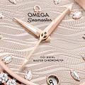 Часы Omega Seamaster Aqua Terra выполнены в симметричном корпусе из нержавеющей стали и 18K Sedna™ золота с завинчивающейся задней крышкой, украшенной волновым узором. Модель дополнена полированным безелем с бриллиантами, что добавляет роскошный акцент. Циферблат золотистого цвета оформлен с использованием волнообразного рисунка и имеет окошко даты на 6 часах. Стрелки выполнены из 18K Sedna™ золота с алмазной полировкой. Часовые метки — 11 бриллиантов в маркизной оправе, что подчёркивает элегантность модели. Калибр Omega 8800 сертифицирован как Master Chronometer — гарантия высочайшей точности и устойчивости к магнитным полям. Запас хода составляет 55 часов. Защиту циферблата обеспечивает сапфировое стеклоСапфировое стеклоПрочный и надёжный материал из кристалла сапфира синтетического происхождения, характеризующийся особой твёрдостью и устойчивостью к царапинам и повреждениям. с антибликовым покрытиемАнтибликовое покрытиеСлой оксида металла в 0,13-0,3 микрон, благодаря которому стекло часов не бликует и не отражает свет. Антибликовое покрытие уменьшает отражение света в 10 раз, обеспечивая отличную читаемость показателей циферблата. с обеих сторон. Водозащита позволяет использовать часы в воде без риска повреждения. Часы установлены на кожаный ремешок бежевого цвета. Это сочетание премиального качества, технологичности и классического дизайна.