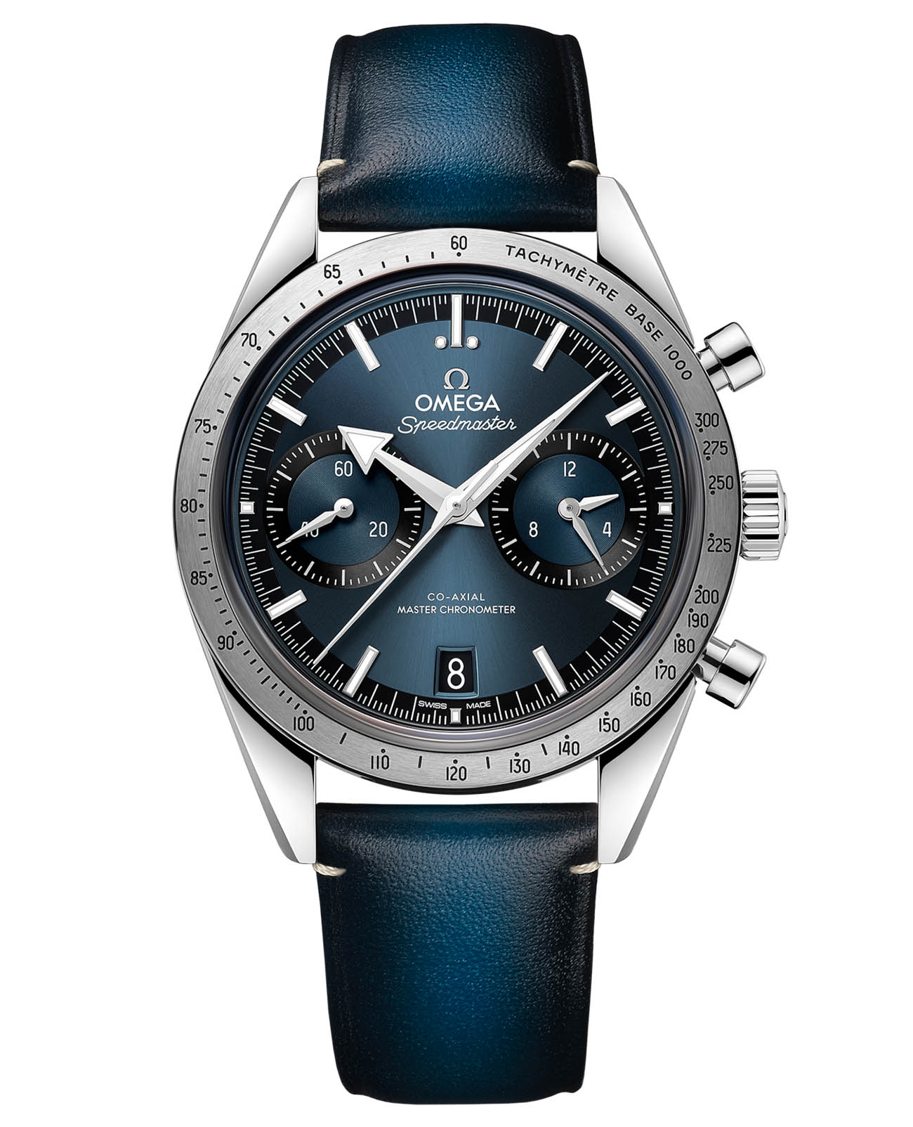 Speedmaster — это не просто часы, а живая легенда OMEGA, прошедшая через все шесть лунных миссий и ставшая олицетворением смелости человеческого духа. 40,5-миллиметровый корпус из нержавеющей стали, вдохновленный легендарным дизайном 1957 года, сочетается с глубоким черным циферблатом, где каждый элемент продуман до мелочей. Углубленные часовые метки, подсвеченные винтажным составом Super-LumiNova, создают неповторимый образ. Стрелки «Broad Arrow» с родиевым покрытием гармонично сочетаются с функциональными элементами: указателем даты на «6 часах», малой секундной стрелкой на «9 часах» и счетчиками хронографаХронографФункция позволяет измерять отрезки времени с особой точностью: часы, минуты, секунды. Верным признаком хронографа является наличие на циферблате 3 дополнительных окошек-счётчиков. на «3 часах». Сатинированный безельБезельВнешний ободок, закрепляющий стекло. В спортивных часах так называется поворотное кольцо с делениями на циферблате, выполняет роль таймера – замеряет отрезки времени на шкале. Неподвижный безель – элемент декора. Однонаправленно вращающийся безель на дайверских часах позволяет фиксировать моменты погружения и выныривания на поверхность. с черненой тахиметрической шкалой придает часам спортивный характер, а плоское сапфировое стеклоСапфировое стеклоПрочный и надёжный материал из кристалла сапфира синтетического происхождения, характеризующийся особой твёрдостью и устойчивостью к царапинам и повреждениям. задней крышки с антибликовым покрытием эффектно демонстрирует гравировку «Speedmaster '57». Внутри бьется сердце этих часов — калибр OMEGA Co-Axial Master Chronometer 9906 с ручным заводом, воплощающий в себе лучшие традиции часового искусства. Завершает образ ремешок из кожи синего цвета с застежкой, украшенной рельефным логотипом OMEGA.