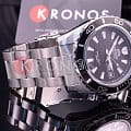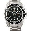 Чёрный циферблат с крупной индикацией времени не имеет лишних деталей. Японский автоматический калибр Orient 46943 имеет запас хода на 40 часов. Завинчивающаяся задняя крышка и заводная головка усиливают водостойкость в 200 метров. люминесцентная подсветкаЛюминесцентное покрытиеПозволяет считывать показания времени в темноте. Производители наносят на стрелки, часовые индексы, безель или поверхность циферблата светонакопительный состав, дающий холодное свечение. позволяет просматривать время и в темноте. На позиции 3 часов – окошко даты и дня недели.