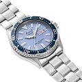 Orient RA‑AA0823L ‘75th Anniversary’ Kamasu (Mako) — лимитированная модель в коллекции дайверских часов, посвящённая 75-летию бренда. Корпус из нержавеющей стали диаметром 41,8 мм с безелем синего цвета оформлен в традиционном стиле, при этом обладает утончёнными юбилейными акцентами и гармоничными пропорциями.