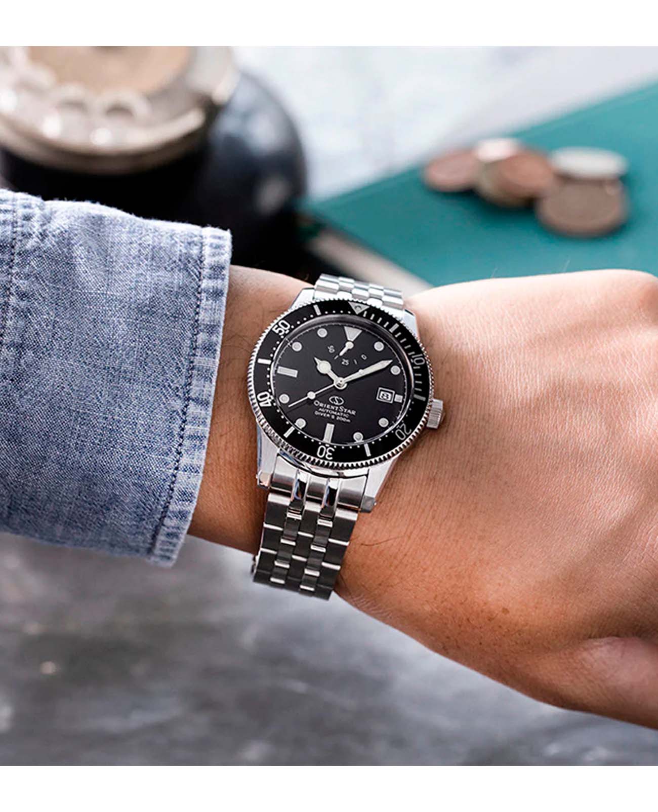 Класс водонепроницаемости этих часов – 200 метров, что дает возможность использовать их при плавании, дайвинге и других активных водных мероприятиях. Часы комплектуются стальным браслетом с раскладной застежкойРаскладная застёжкаТакой тип застёжки используется только на браслетах из металла. Она никогда не раскрывается полностью, происходит разделение на 2 и более частей. Раскладывающая застёжка снизит вероятность потери часов к минимуму., которая обеспечивает надежную фиксацию и комфорт при носке.