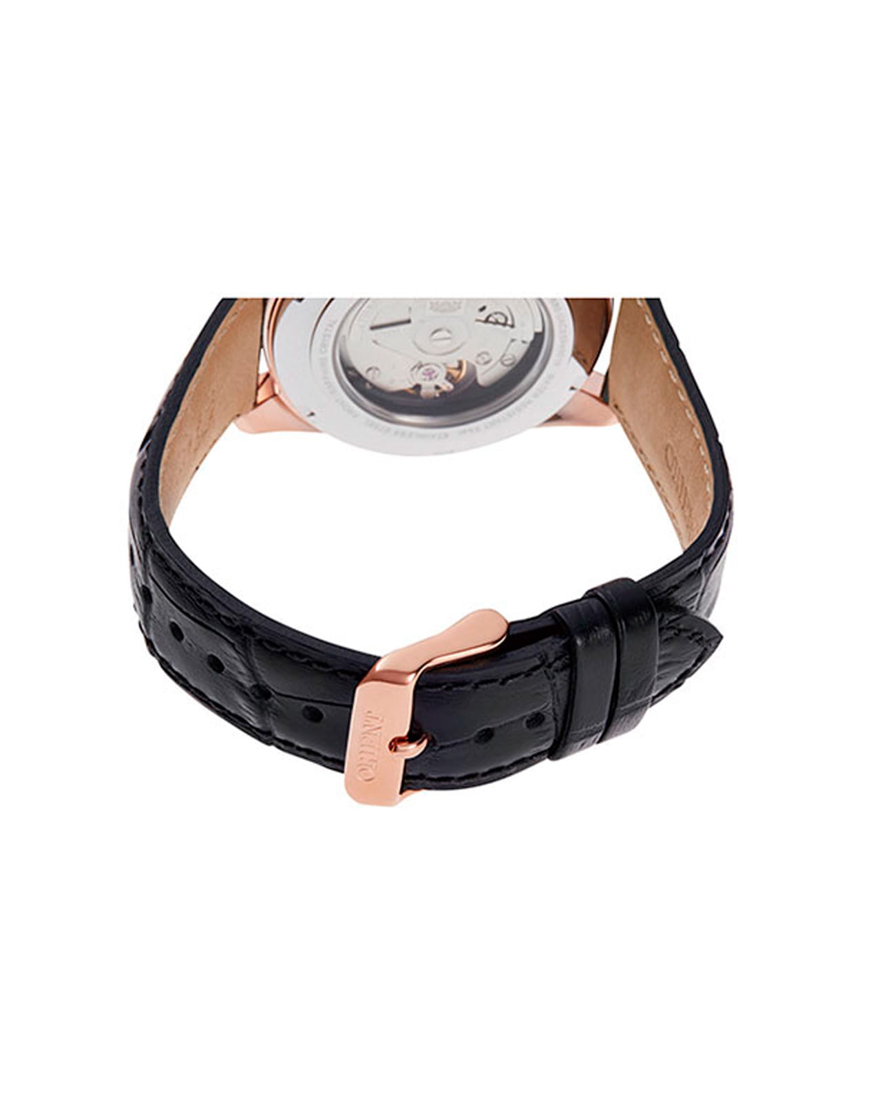 Ремешок часов изготовлен из чёрной кожи, что придаёт часам классический и элегантный вид. Застёжка выполнена в виде стандартной конструкции.