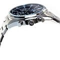 Мужские кварцевые часы-хронографХронографФункция позволяет измерять отрезки времени с особой точностью: часы, минуты, секунды. Верным признаком хронографа является наличие на циферблате 3 дополнительных окошек-счётчиков. Orient Sport WV0021TX. Корпус часов изготовлен из нержавеющей стали. Минеральное стеклоМинеральное стеклоМинеральное стекло представляет собой искусственно выращенный минерал кварца. Такое стекло отличается особой устойчивостью к повреждениям и царапинам. Уступает по некоторым качествам сапфировому стеклу. устойчивое к появлению царапин, обладающее высокой прозрачностью. Стальной браслет на раскладной застёжкеРаскладная застёжкаТакой тип застёжки используется только на браслетах из металла. Она никогда не раскрывается полностью, происходит разделение на 2 и более частей. Раскладывающая застёжка снизит вероятность потери часов к минимуму.. Водозащита: 100 метров, позволит плавать, нырять и заниматься другими водными видами спорта. Стрелки и метки с люминесцентным покрытиемЛюминесцентное покрытиеПозволяет считывать показания времени в темноте. Производители наносят на стрелки, часовые индексы, безель или поверхность циферблата светонакопительный состав, дающий холодное свечение..