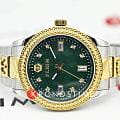 Часы Philipp Plein PWCDA0524 из коллекции Queen сочетают элегантность и функциональность. Корпус диаметром 38 мм выполнен из нержавеющей стали, придающим изделию роскошный вид. Зеленый циферблат украшен фирменным логотипом бренда в виде черепа на отметке 12 часов. БезельБезельВнешний ободок, закрепляющий стекло. В спортивных часах так называется поворотное кольцо с делениями на циферблате, выполняет роль таймера – замеряет отрезки времени на шкале. Неподвижный безель – элемент декора. Однонаправленно вращающийся безель на дайверских часах позволяет фиксировать моменты погружения и выныривания на поверхность. с IP-покрытиемIP-покрытиеМетод ионного напыления. Демонстрирует повышенную устойчивость к истиранию, окислению и химическим веществам. Под воздействием высокого давления и температуры около 1500°C молекулы металла надёжно соединяются с частицами корпуса часов..