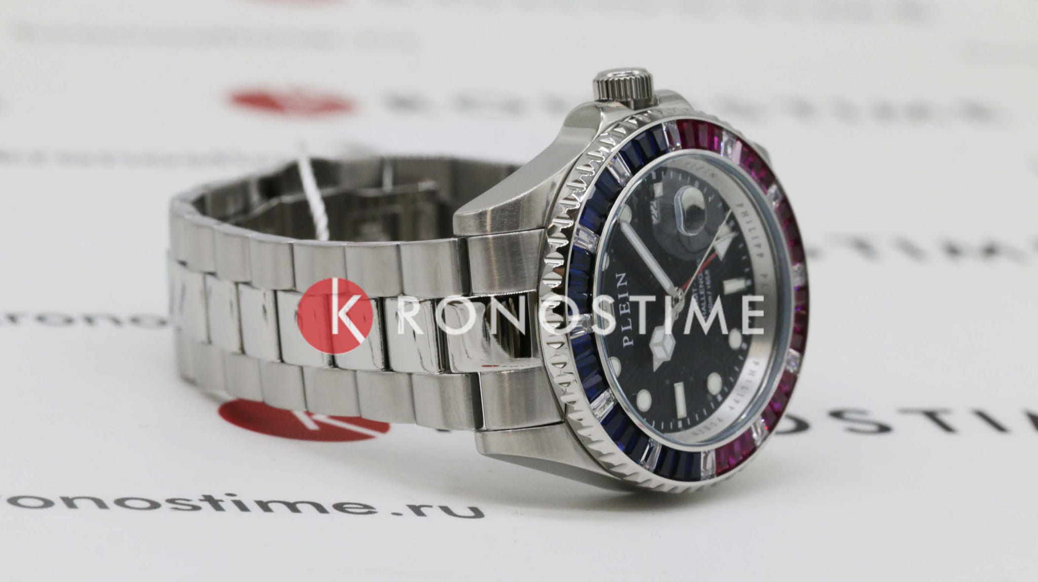 Часы Philipp Plein GMT-I Challenger Baguettes (модель PWPZA0124) — это стильный мужской аксессуар, который сочетает элегантный дизайн и высокое качество. Корпус диаметром 44 мм выполнен из нержавеющей стали и украшен 48 кристаллами огранки "багет" на безеле, что придаёт часам роскошный и выразительный вид. Чёрный циферблат с гильошированным узором и фирменными гексаграммами Philipp Plein создаёт узнаваемый стиль. Циферблат защищён минеральным стекломМинеральное стеклоМинеральное стекло представляет собой искусственно выращенный минерал кварца. Такое стекло отличается особой устойчивостью к повреждениям и царапинам. Уступает по некоторым качествам сапфировому стеклу., устойчивым к царапинам.БезельБезельВнешний ободок, закрепляющий стекло. В спортивных часах так называется поворотное кольцо с делениями на циферблате, выполняет роль таймера – замеряет отрезки времени на шкале. Неподвижный безель – элемент декора. Однонаправленно вращающийся безель на дайверских часах позволяет фиксировать моменты погружения и выныривания на поверхность. с PVD-покрытиемPVDУльтратонкое покрытие наносится в технике вакуумного напыления, сочетает в себе нитрид титана особой прочности со слоем золота или оксида хрома. Несёт в себе декоративную или защитную функцию..