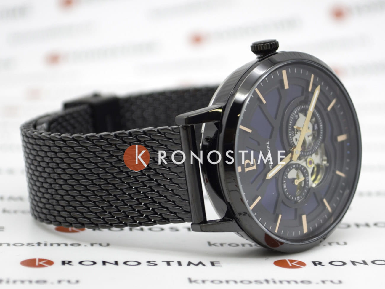 Мужские механические часы с автоподзаводом Pierre Lannier Trio 335B469. Минеральное стеклоМинеральное стеклоМинеральное стекло представляет собой искусственно выращенный минерал кварца. Такое стекло отличается особой устойчивостью к повреждениям и царапинам. Уступает по некоторым качествам сапфировому стеклу. устойчивое к мелким механическим повреждениям. 12/24х часовой формат времени. Центральные часовая и минутная стрелки, секундная стрелка вынесена на малый циферблат. Корпус выполнен из нержавеющей стали с IP-покрытиемIP-покрытиеМетод ионного напыления. Демонстрирует повышенную устойчивость к истиранию, окислению и химическим веществам. Под воздействием высокого давления и температуры около 1500°C молекулы металла надёжно соединяются с частицами корпуса часов.. Водостойкость: 50 метров, позволит защитить корпус от случайных брызг или капель дождя. Стальной браслет миланского плетения с раскладной застёжкойРаскладная застёжкаТакой тип застёжки используется только на браслетах из металла. Она никогда не раскрывается полностью, происходит разделение на 2 и более частей. Раскладывающая застёжка снизит вероятность потери часов к минимуму.. Синий циферблат с открытым балансом хода. Стрелки с люминесцентным покрытиемЛюминесцентное покрытиеПозволяет считывать показания времени в темноте. Производители наносят на стрелки, часовые индексы, безель или поверхность циферблата светонакопительный состав, дающий холодное свечение..