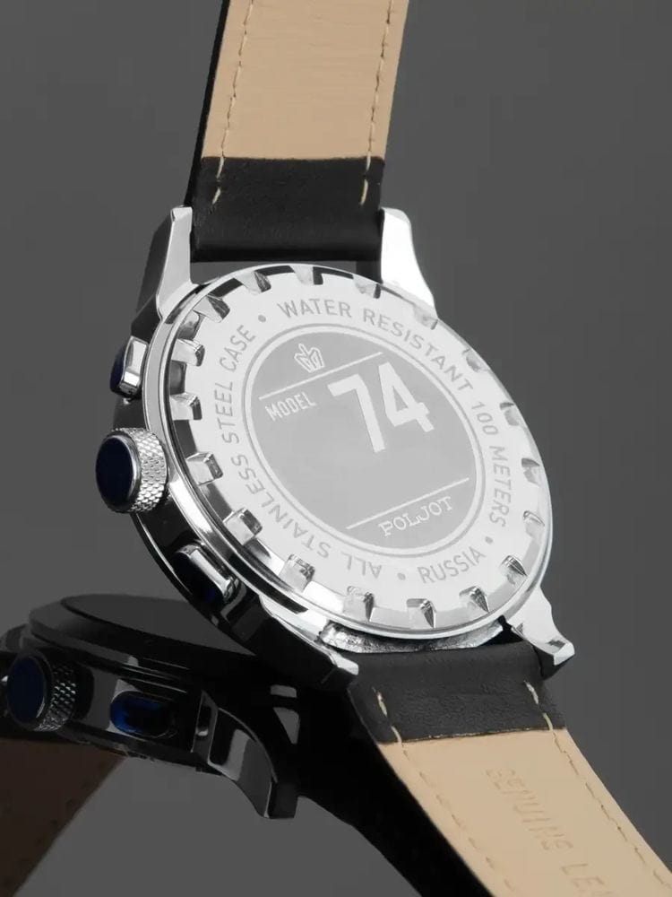 Poljot 6S21.741034 — классические мужские часы, в которых традиции российского часового мастерства сочетаются с современным дизайном. Корпус из нержавеющей стали подчёркивает солидность и надёжность модели, а насыщенный циферблат с лучевой текстурой придаёт образу выразительность и глубину. Два дополнительных счётчика хронографаХронографФункция позволяет измерять отрезки времени с особой точностью: часы, минуты, секунды. Верным признаком хронографа является наличие на циферблате 3 дополнительных окошек-счётчиков. обеспечивают точное измерение интервалов времени, дополняя функциональность часов. Контрастные стрелки и метки с люминесцентным покрытиемЛюминесцентное покрытиеПозволяет считывать показания времени в темноте. Производители наносят на стрелки, часовые индексы, безель или поверхность циферблата светонакопительный состав, дающий холодное свечение. обеспечивают отличную читаемость даже в условиях слабого освещения. Прочное минеральное стеклоМинеральное стеклоМинеральное стекло представляет собой искусственно выращенный минерал кварца. Такое стекло отличается особой устойчивостью к повреждениям и царапинам. Уступает по некоторым качествам сапфировому стеклу. защищает циферблат от царапин, а ремешок из натуральной кожи с классической пряжкой гарантирует комфорт и элегантную посадку на запястье. Poljot — это надёжный спутник современного мужчины, объединяющий точность, стиль и характер.