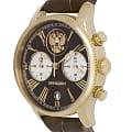 Часы «Президент» модели 3526416 — это мужские кварцевые наручные часы с хронографом, выпущенные ограниченным тиражом в 100 экземпляров. Механизм: японский кварцевый хронограф Miyota 6S21, обеспечивающий высокую точность. Функции: часы, минуты, секунды, дата, хронограф (секундомер). Корпус: из нержавеющей стали с PVD-покрытиемPVDУльтратонкое покрытие наносится в технике вакуумного напыления, сочетает в себе нитрид титана особой прочности со слоем золота или оксида хрома. Несёт в себе декоративную или защитную функцию. цвета жёлтого золота, диаметром 41,8 мм, толщиной 11,4 мм. Циферблат: чёрный с римскими цифрами и изображением государственного герба, подчёркивающий элегантный стиль. Стекло: сапфировое стеклоСапфировое стеклоПрочный и надёжный материал из кристалла сапфира синтетического происхождения, характеризующийся особой твёрдостью и устойчивостью к царапинам и повреждениям. с антибликовым покрытием, устойчивое к царапинам. Водонепроницаемость: 5 ATM (50 метров), что делает часы подходящими для повседневного использования. Ремешок: из натуральной кожи коричневого цвета, шириной 20 мм, с классической застёжкой. Эти часы — идеальный выбор для ценителей стиля и ограниченных коллекций.