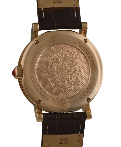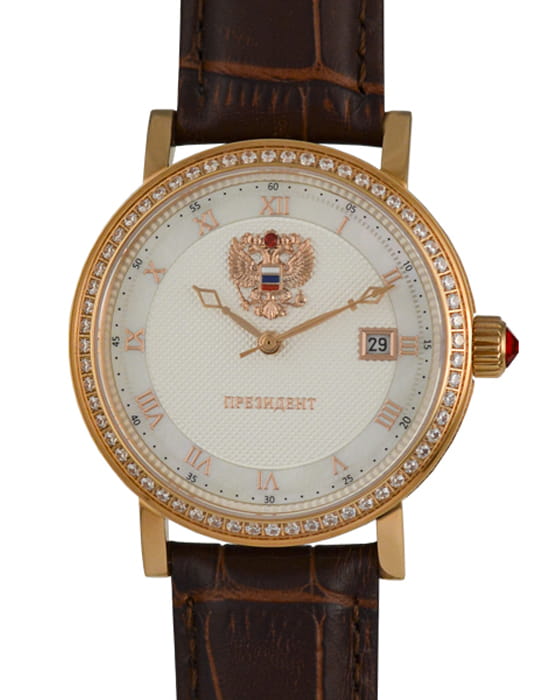 Часы «Президент» модели 3909417 — это элегантные механические наручные часы с автоподзаводом, сочетающие классический дизайн и высокое качество исполнения. Механизм: японский механизм Miyota 8215 с автоподзаводом, обеспечивающий точность и надёжность. Функции: часы, минуты, секунды и дата. Корпус: из нержавеющей стали с PVD-покрытиемPVDУльтратонкое покрытие наносится в технике вакуумного напыления, сочетает в себе нитрид титана особой прочности со слоем золота или оксида хрома. Несёт в себе декоративную или защитную функцию. цвета розового золота, диаметром 38,4 мм и толщиной 12 мм. Циферблат: светлый с перламутровыми вставками, украшен кристаллами Swarovski и изображением государственного герба России. Стекло: сапфировоеСапфировое стеклоПрочный и надёжный материал из кристалла сапфира синтетического происхождения, характеризующийся особой твёрдостью и устойчивостью к царапинам и повреждениям., устойчивое к царапинам. Водонепроницаемость: 3 ATM (30 метров), защищает от случайных брызг и дождя. Ремешок: кожаный, шириной 20 мм, с классической застёжкой. Эти часы станут отличным выбором для тех, кто ценит стиль, качество и надёжность.