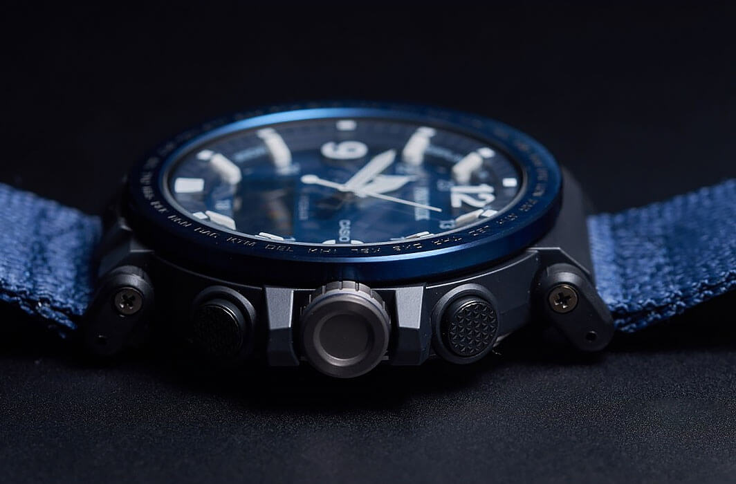 , секундомер, хронографХронографФункция позволяет измерять отрезки времени с особой точностью: часы, минуты, секунды. Верным признаком хронографа является наличие на циферблате 3 дополнительных окошек-счётчиков., календарь, мировое времяМировое время Полезное часовое усложнение, отображающее время в основных городах и известных областях по всему миру, оно связано с часовыми поясами, удобно для путешественников и бизнесменов. – 29 часовых поясов. Это часы на солнечной батарее , функция сохранения энергии позволяет модели работать без подзарядки на протяжении 25 месяцев. Текстильный ремешок Blue Navy. Ударопрочный корпусУдаропрочный корпусМеханизм заключён в корпус, выполненный из современных материалов, устойчивых к ударам, механическим повреждениям и падению с высоты: инновационный пластик, карбон, нержавеющая сталь, титан. из пластика и стали 316L с IP-покрытиемIP-покрытиеМетод ионного напыления. Демонстрирует повышенную устойчивость к истиранию, окислению и химическим веществам. Под воздействием высокого давления и температуры около 1500°C молекулы металла надёжно соединяются с частицами корпуса часов.. Минеральное стекло. Устойчивость к температурам ниже -10°C. Двойная светодиодная подсветкаСветодиодная подсветкаСветодиодная или LED-подсветка обеспечивает появление яркого холодного свечения за счёт LED-элементов - маленьких лампочек. Они потребляют минимальное количество энергии, чаще всего можно встретить 1 светодиод, в нижней части циферблата.. Класс водостойкости WR 100. Габариты: 51,6 x 51,5 x 13,4 мм.
