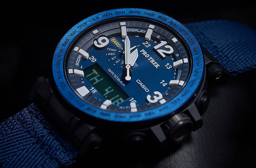 Это идеальный вариант для людей, неравнодушных к туристическим походам и дальним странствиям. Наручные часы в синем исполнении оснащены всем необходимым, чтобы путешествие прошло максимально легко: цифровой компас, барометр, высотомер с памятью данных, термометр -10°C /+60°C, будильник, UTCUTCВсемирное кординационное время, не имеющее привязки к географическому положению Гринвича, основывается на атомном отсчёте времени. Регулировка времени осуществляется более точно, чем устаревшее GMT.