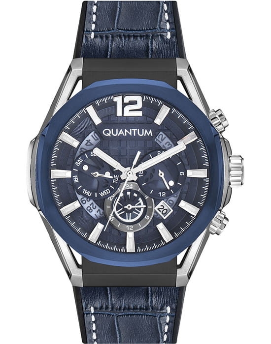 Мужские часы c хронографомХронографФункция позволяет измерять отрезки времени с особой точностью: часы, минуты, секунды. Верным признаком хронографа является наличие на циферблате 3 дополнительных окошек-счётчиков. Quantum PWG970.699, кварцевый механизм с высокой точностью. Минеральное стеклоМинеральное стеклоМинеральное стекло представляет собой искусственно выращенный минерал кварца. Такое стекло отличается особой устойчивостью к повреждениям и царапинам. Уступает по некоторым качествам сапфировому стеклу. устойчивое к появлению царапин, обладающее высокой прозрачностью. Класс водозащиты: 50 метров, позволит защитить корпус от случайных брызг или капель дождя. Корпус часов изготовлен из стали с IP-покрытиемIP-покрытиеМетод ионного напыления. Демонстрирует повышенную устойчивость к истиранию, окислению и химическим веществам. Под воздействием высокого давления и температуры около 1500°C молекулы металла надёжно соединяются с частицами корпуса часов.. Стрелки и метки с люминесцентным покрытиемЛюминесцентное покрытиеПозволяет считывать показания времени в темноте. Производители наносят на стрелки, часовые индексы, безель или поверхность циферблата светонакопительный состав, дающий холодное свечение.. Кожаный ремешок.