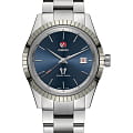 Премиальная модель стала современной интерпретацией знаковой линейки 1957 года, воплощающей ретро-элементы в новом формате. Синий циферблат в лаконичном исполнении дополнен фирменными логотипами. Часы выполнены из долговечной стали 316L, исключением стал фигурный безельБезельВнешний ободок, закрепляющий стекло. В спортивных часах так называется поворотное кольцо с делениями на циферблате, выполняет роль таймера – замеряет отрезки времени на шкале. Неподвижный безель – элемент декора. Однонаправленно вращающийся безель на дайверских часах позволяет фиксировать моменты погружения и выныривания на поверхность. из плазменной керамикиВысокотехнологичная плазменная керамикаИнновационный материал, технология запатентована. Выплавление керамики осуществляется в печи при 20 000 °C, белоснежный материал под воздействием ультравысокой температуры приобретает уникальный блеск, присущий металлам.. Автоматический калибр ETA C07.611 швейцарского производства с запасом хода на 80 часов. Для защиты циферблата и прозрачной задней крышки выбрано сапфировое стекло. Водонепроницаемость WR 50. Браслет с . Прямоугольная апертура даты. Диаметр корпуса: 41,8 мм.