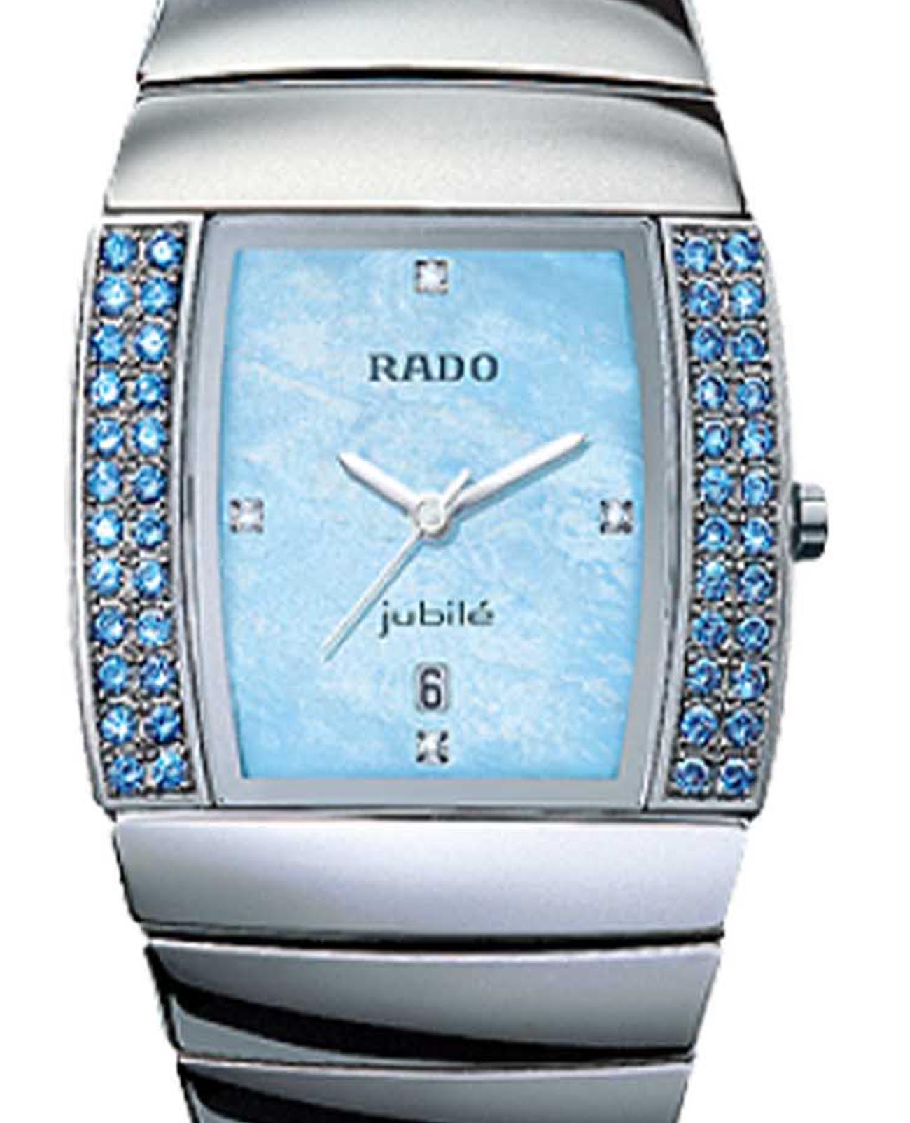 Часы Rado Sintra R13579912, произведение искусства и технологическое чудо, станут прекрасным дополнением к коллекции. Эти швейцарские часы оснащены кварцевым механизмом с указателем даты и тремя стрелками, заключенным в корпус из нержавеющей стали. Браслет изготовлен из высокотехнологичной керамикиВысокотехнологичная керамикаИнновационный запатентованный Rado материал с гладкой или матовой поверхностью. Керамика за счёт кристаллической структуры обладает повышенной устойчивостью от возникновения царапин. Материал способен принимать температуру тела человека, обеспечивая невероятный комфорт при ношении. с раскладной застёжкойРаскладная застёжкаТакой тип застёжки используется только на браслетах из металла. Она никогда не раскрывается полностью, происходит разделение на 2 и более частей. Раскладывающая застёжка снизит вероятность потери часов к минимуму.. Корпус украшен 48 бриллиантами (0,50 карата). Сапфировое стеклоСапфировое стеклоПрочный и надёжный материал из кристалла сапфира синтетического происхождения, характеризующийся особой твёрдостью и устойчивостью к царапинам и повреждениям. устойчивое к появлению царапин, обладающее высокой прозрачностью. Класс водозащиты: 30 метров, позволит защитить корпус от случайных брызг или капель дождя.