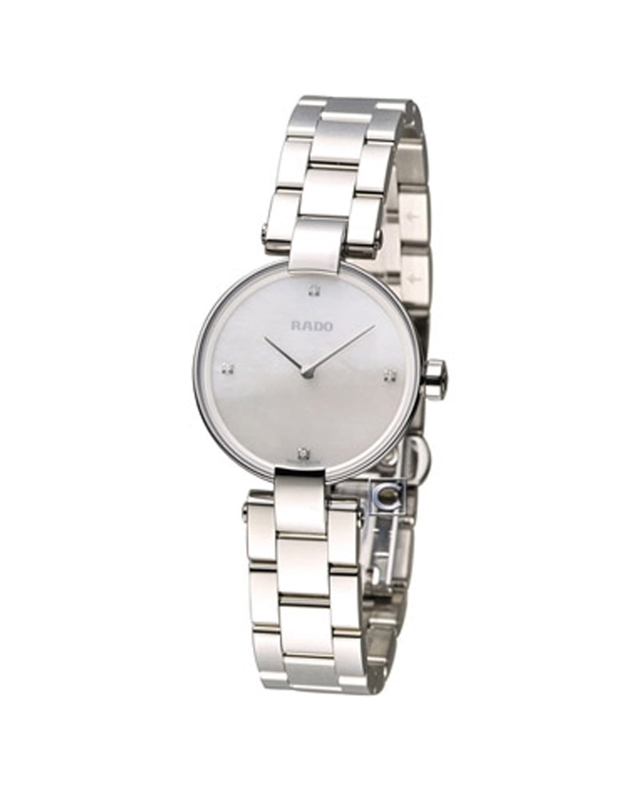 Швейцарские женские часы Rado Coupole Classic Diamonds R22854933, кварцевый механизм с высокой точностью. Сапфировое стеклоСапфировое стеклоПрочный и надёжный материал из кристалла сапфира синтетического происхождения, характеризующийся особой твёрдостью и устойчивостью к царапинам и повреждениям. устойчивое к появлению царапин, обладающее высокой прозрачностью. Корпус часов изготовлен из нержавеющей стали. Циферблат украшен бриллиантами. Класс водозащиты: 50 метров, позволит защитить корпус от случайных брызг или капель дождя. Стальной браслет на застёжке-бабочке с кнопкамиЗастёжка "бабочка"Такой вид застёжки дополняется предохранителями, помогающими избежать случайного раскрытия браслета. Обладают изящным исполнением. .