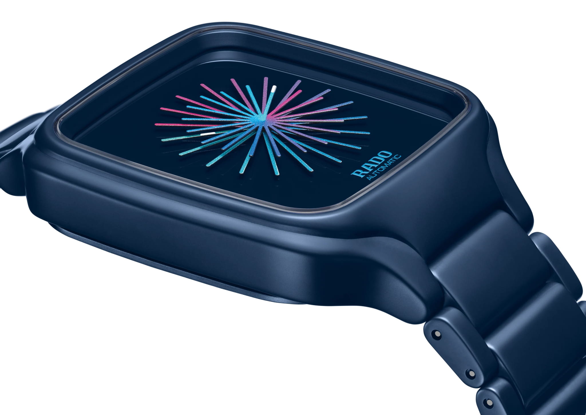 Компания Rado вновь с гордостью сообщает о пополнении коллекции True Square новой моделью часов True Square Over the Abyss. Это результат сотрудничества с дизайнерским дуэтом из Нью Дели Thukral and Tagra. Часы подчеркивают временность всего и акцентируют внимание на важности общения с другими людьми. Индийский дуэт обратился к концепции социального дизайна, чтобы вместе с экспертом в материалах создать часы с уникальным отображением времени, которые показывали бы не только местное время владельца часов, но также время в других часовых поясах мира. Эти часовые пояса обозначены при помощи 37 стрелок, окрашенных в цвета, плавно перетекающие из одного в другой — от синего до розового — и создающие эффект сказочного фейерверка в центре циферблата. Два отдельных, но заметных индикатора в виде точек SuperLuminova указывают на местное время. Циферблат с цветными акцентами облачен в квадратный корпус из матовой высокотехнологичной керамики синего цвета диаметром 38 мм — культовые дизайн и форма Rado родом из 70-х, обновленные в духе ХХІ века. Задняя крышка корпуса украшена рисунком под названием Dominus Aeries, созданным дуэтом, который сочетает в себе взгляд на будущее и воспоминания из прошлого. Поэтому верхняя и задняя часть часов являются прекрасными произведениями искусства в исполнении Thukral and Tagra.