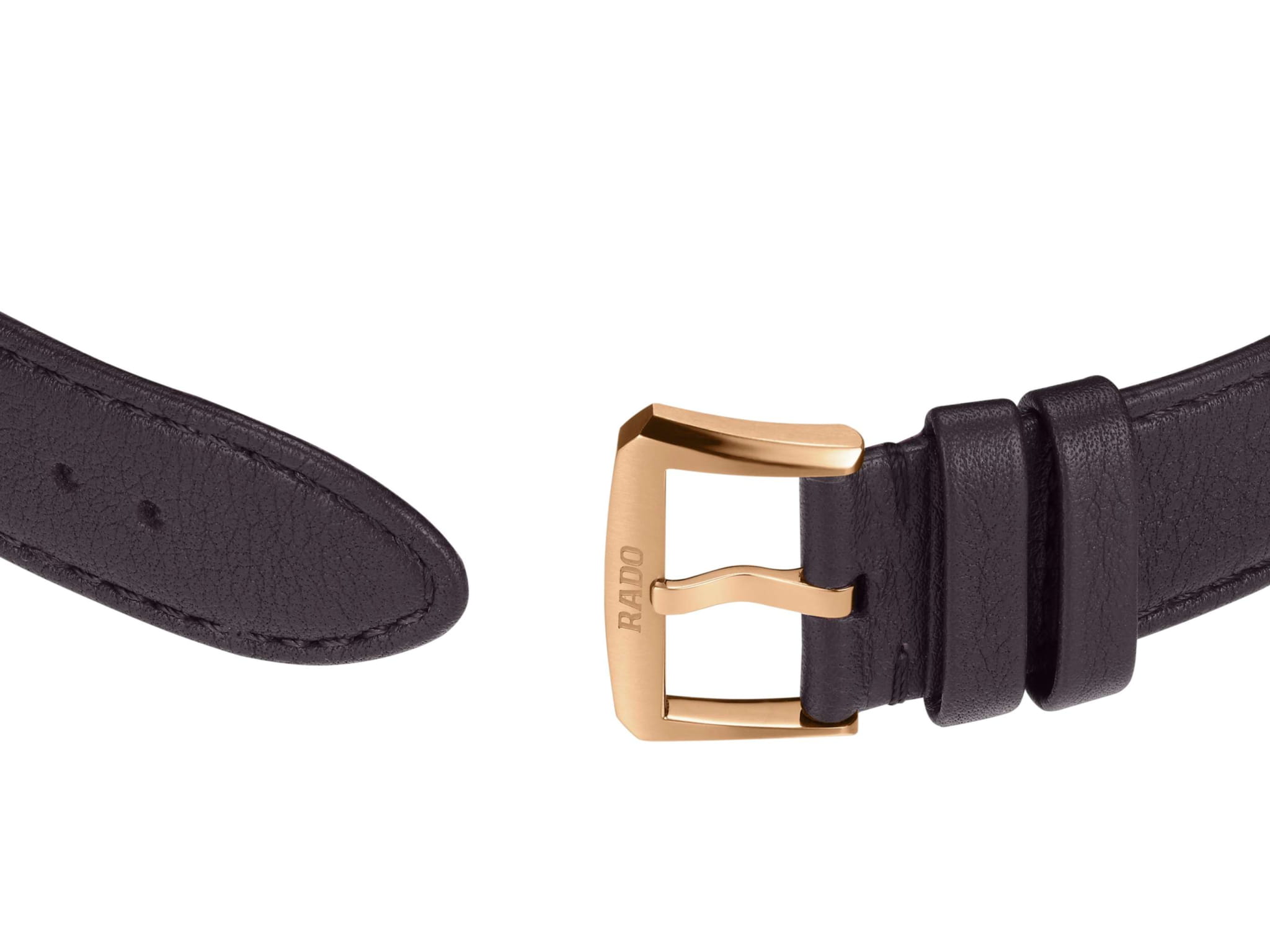 Универсальные механические часы с автоподзаводом Rado из коллекции Florence — это воплощение швейцарской точности и элегантности. Корпус диаметром 39 мм и толщиной 11 мм выполнен из нержавеющей стали с PVD-покрытиемPVDУльтратонкое покрытие наносится в технике вакуумного напыления, сочетает в себе нитрид титана особой прочности со слоем золота или оксида хрома. Несёт в себе декоративную или защитную функцию. розового золота. Циферблат бежевого цвета с рельефным узором оформлен накладными индексами и подвижным якорем бренда — символом Rado. Циферблат защищён сапфировым стекломСапфировое стеклоПрочный и надёжный материал из кристалла сапфира синтетического происхождения, характеризующийся особой твёрдостью и устойчивостью к царапинам и повреждениям. с антибликовым покрытиемАнтибликовое покрытиеСлой оксида металла в 0,13-0,3 микрон, благодаря которому стекло часов не бликует и не отражает свет. Антибликовое покрытие уменьшает отражение света в 10 раз, обеспечивая отличную читаемость показателей циферблата., которое одновременно выполняет функцию безеляБезельВнешний ободок, закрепляющий стекло. В спортивных часах так называется поворотное кольцо с делениями на циферблате, выполняет роль таймера – замеряет отрезки времени на шкале. Неподвижный безель – элемент декора. Однонаправленно вращающийся безель на дайверских часах позволяет фиксировать моменты погружения и выныривания на поверхность.. Механизм — автоматический калибр R763 с пружиной Nivachron™Nivachron™Специально разработанный инновационный сплав Nivachron™ повышает устойчивость часов к воздействию магнитных полей., отрегулированный в пяти положениях, с запасом хода 80 часов. Окошко даты расположено в положении 3 часов. Завинчивающаяся коронка обеспечивает дополнительную защиту. Часы оснащены кожаным ремешком коричневого цвета и пряжкой из нержавеющей стали с PVD-покрытиемPVDУльтратонкое покрытие наносится в технике вакуумного напыления, сочетает в себе нитрид титана особой прочности со слоем золота или оксида хрома. Несёт в себе декоративную или защитную функцию. розового золота. Водонепроницаемость 50 м позволяет использовать часы в повседневных условиях. Идеальный выбор для тех, кто ценит мастерство, стиль и универсальность.