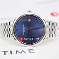 Циферблат синего цвета украшен центральными часовой и минутной стрелками, а также имеет удобную индикацию даты в позиции 3 часа. Для обеспечения видимости в любых условиях часы оснащены сапфировым стекломСапфировое стеклоПрочный и надёжный материал из кристалла сапфира синтетического происхождения, характеризующийся особой твёрдостью и устойчивостью к царапинам и повреждениям. с антибликовым покрытиемАнтибликовое покрытиеСлой оксида металла в 0,13-0,3 микрон, благодаря которому стекло часов не бликует и не отражает свет. Антибликовое покрытие уменьшает отражение света в 10 раз, обеспечивая отличную читаемость показателей циферблата., устойчивым к царапинам и механическим повреждениям.