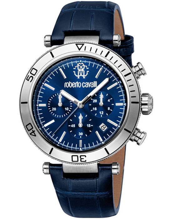 Roberto Cavalli Ritmo RC5G128L0025 — мужская кварцевая модель с ярко выраженным спортивным стилем и практичным функционалом, сочетающая строгий дизайн и надёжность. Корпус диаметром 43 мм и толщиной 12 мм выполнен из нержавеющей стали, защищён прочным минеральным стекломМинеральное стеклоМинеральное стекло представляет собой искусственно выращенный минерал кварца. Такое стекло отличается особой устойчивостью к повреждениям и царапинам. Уступает по некоторым качествам сапфировому стеклу., устойчивым к повседневным повреждениям и сохраняющим хорошую читаемость циферблата. БезельБезельВнешний ободок, закрепляющий стекло. В спортивных часах так называется поворотное кольцо с делениями на циферблате, выполняет роль таймера – замеряет отрезки времени на шкале. Неподвижный безель – элемент декора. Однонаправленно вращающийся безель на дайверских часах позволяет фиксировать моменты погружения и выныривания на поверхность.. Водозащита 100 м делает часы надёжным спутником во время плавания и активного отдыха. Функциональность поддерживается индикаторами хронографаХронографФункция позволяет измерять отрезки времени с особой точностью: часы, минуты, секунды. Верным признаком хронографа является наличие на циферблате 3 дополнительных окошек-счётчиков. и даты, которые органично вписаны в оформление циферблата. Кожаный ремешок шириной 22 мм обеспечивает комфортную посадку и долговечность, а также гармонично завершает образ модели, которая одинаково хорошо подойдёт как для динамичного повседневного ритма, так и для более строгих ситуаций.
