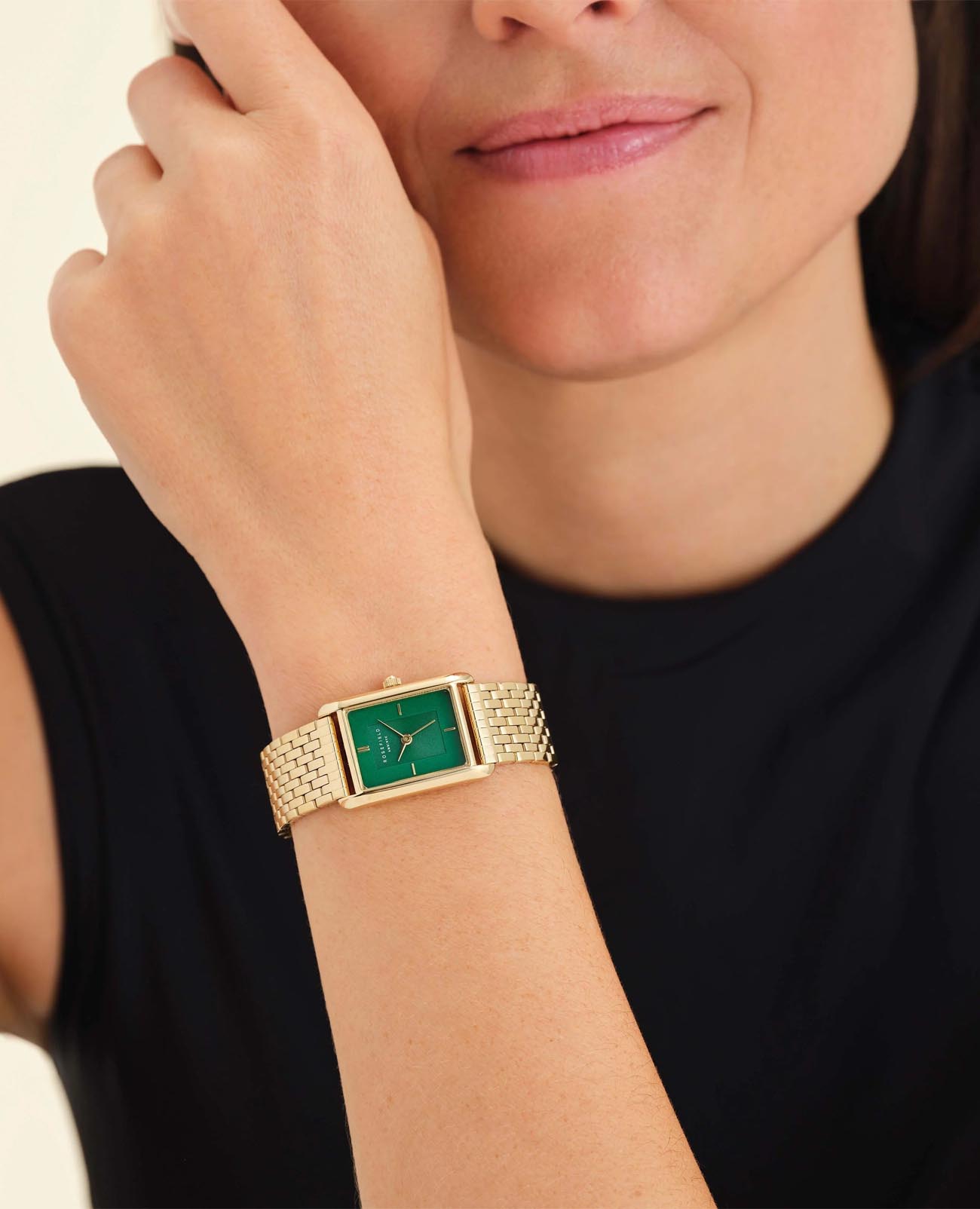 Женские кварцевые часы Rosefield Heirloom HEGSG-H05. Центральные часовая, минутная и секундная стрелки. Корпус и браслет выполнены из нержавеющей стали с IP-покрытиемIP-покрытиеМетод ионного напыления. Демонстрирует повышенную устойчивость к истиранию, окислению и химическим веществам. Под воздействием высокого давления и температуры около 1500°C молекулы металла надёжно соединяются с частицами корпуса часов.. Стальной браслет на раскладном замкеРаскладной замокДанный вариант застежки используется только на часах с металлическим браслетом. Отличительная особенность такого крепления в том, что длина браслета становится универсальной и вы можете самостоятельно отрегулировать нужный вам размер – застежка просто двигается по браслету часов.. Прочное минеральное стеклоМинеральное стеклоМинеральное стекло представляет собой искусственно выращенный минерал кварца. Такое стекло отличается особой устойчивостью к повреждениям и царапинам. Уступает по некоторым качествам сапфировому стеклу. устойчивое к мелким механическим повреждениям. Водостойкость Класс водозащиты: 30 метров, позволит защитить корпус от случайных брызг или капель дождя.
