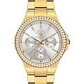 Женские кварцевые часы Santa Barbara Polo & Racquet Club — это функциональный и стильный аксессуар для активной женщины. Корпус диаметром 34 мм и высотой 42 мм выполнен из латуни с IP-покрытиемIP-покрытиеМетод ионного напыления. Демонстрирует повышенную устойчивость к истиранию, окислению и химическим веществам. Под воздействием высокого давления и температуры около 1500°C молекулы металла надёжно соединяются с частицами корпуса часов. и украшен кристаллами. Циферблат серебристого цвета оформлен по технологии Sunray («солнечные лучи»), дополнен накладными метками в виде штрихов и фирменным логотипом. Указатели дня недели и даты вынесены на отдельные субциферблаты, также присутствует индикация 24-часового формата времени. Стрелки и метки с люминесцентным покрытиемЛюминесцентное покрытиеПозволяет считывать показания времени в темноте. Производители наносят на стрелки, часовые индексы, безель или поверхность циферблата светонакопительный состав, дающий холодное свечение., обеспечивающим хорошую читаемость в темноте. Циферблат защищён минеральным стекломМинеральное стеклоМинеральное стекло представляет собой искусственно выращенный минерал кварца. Такое стекло отличается особой устойчивостью к повреждениям и царапинам. Уступает по некоторым качествам сапфировому стеклу.. Механизм — кварцевый калибр VX3JE1. Часы оснащены стальным браслетом с IP-покрытиемIP-покрытиеМетод ионного напыления. Демонстрирует повышенную устойчивость к истиранию, окислению и химическим веществам. Под воздействием высокого давления и температуры около 1500°C молекулы металла надёжно соединяются с частицами корпуса часов. и раскладной застёжкойРаскладная застёжкаТакой тип застёжки используется только на браслетах из металла. Она никогда не раскрывается полностью, происходит разделение на 2 и более частей. Раскладывающая застёжка снизит вероятность потери часов к минимуму.. Водонепроницаемость 50 м позволяет использовать часы в повседневных условиях. Идеальный выбор для тех, кто ценит стиль, функциональность и качество.