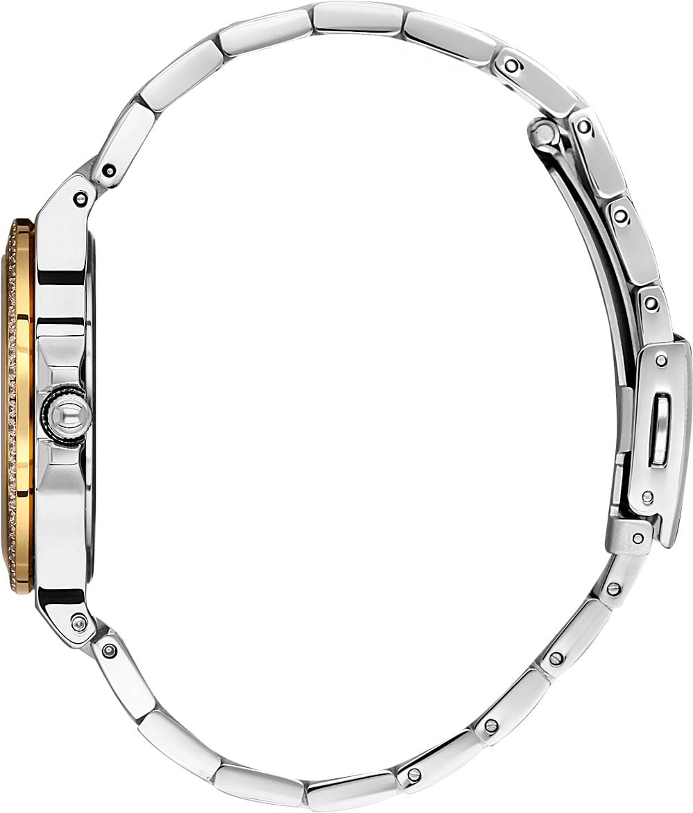 Женские кварцевые часы Santa Barbara Polo & Racquet Club — это функциональный и стильный аксессуар для активной женщины. Корпус диаметром 34 мм и высотой 42 мм выполнен из латуни. Безель с IP-покрытиемIP-покрытиеМетод ионного напыления. Демонстрирует повышенную устойчивость к истиранию, окислению и химическим веществам. Под воздействием высокого давления и температуры около 1500°C молекулы металла надёжно соединяются с частицами корпуса часов. и украшен кристаллами. Циферблат чёрного цвета оформлен по технологии Sunray («солнечные лучи»), дополнен накладными метками в виде штрихов и фирменным логотипом. Указатели дня недели и даты вынесены на отдельные субциферблаты, также присутствует индикация 24-часового формата времени. Стрелки и метки с люминесцентным покрытиемЛюминесцентное покрытиеПозволяет считывать показания времени в темноте. Производители наносят на стрелки, часовые индексы, безель или поверхность циферблата светонакопительный состав, дающий холодное свечение., обеспечивающим хорошую читаемость в темноте. Циферблат защищён минеральным стекломМинеральное стеклоМинеральное стекло представляет собой искусственно выращенный минерал кварца. Такое стекло отличается особой устойчивостью к повреждениям и царапинам. Уступает по некоторым качествам сапфировому стеклу.. Механизм — кварцевый калибр VX3JE1. Часы оснащены стальным браслетом с частичным IP-покрытиемIP-покрытиеМетод ионного напыления. Демонстрирует повышенную устойчивость к истиранию, окислению и химическим веществам. Под воздействием высокого давления и температуры около 1500°C молекулы металла надёжно соединяются с частицами корпуса часов. и раскладной застёжкойРаскладная застёжкаТакой тип застёжки используется только на браслетах из металла. Она никогда не раскрывается полностью, происходит разделение на 2 и более частей. Раскладывающая застёжка снизит вероятность потери часов к минимуму.. Водонепроницаемость 50 м позволяет использовать часы в повседневных условиях. Идеальный выбор для тех, кто ценит стиль, функциональность и качество.