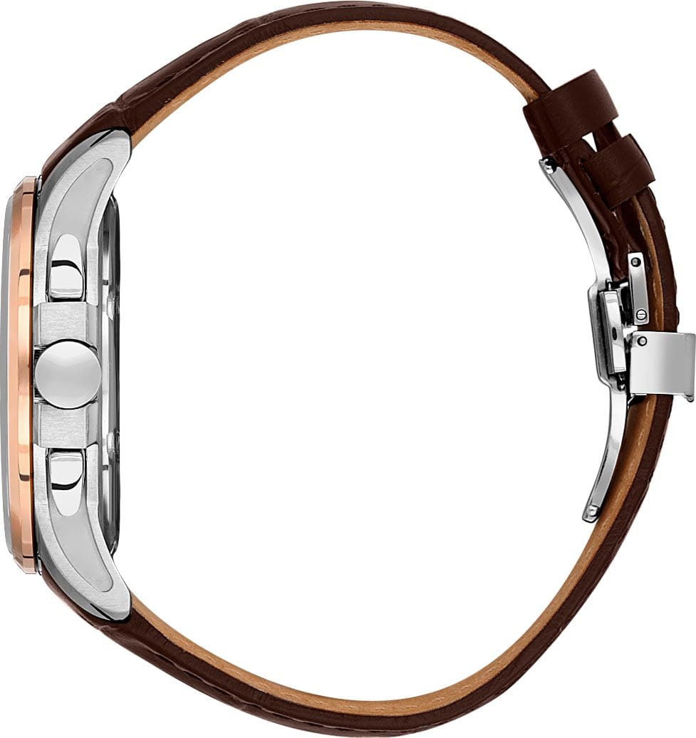 Мужские кварцевые часы Santa Barbara Polo & Racquet Club — это идеальный выбор для тех, кто ценит практичность и стиль. Корпус диаметром 43 мм выполнен из нержавеющей стали 316L с полированной отделкой. БезельБезельВнешний ободок, закрепляющий стекло. В спортивных часах так называется поворотное кольцо с делениями на циферблате, выполняет роль таймера – замеряет отрезки времени на шкале. Неподвижный безель – элемент декора. Однонаправленно вращающийся безель на дайверских часах позволяет фиксировать моменты погружения и выныривания на поверхность. из стали с IP-покрытиемIP-покрытиеМетод ионного напыления. Демонстрирует повышенную устойчивость к истиранию, окислению и химическим веществам. Под воздействием высокого давления и температуры около 1500°C молекулы металла надёжно соединяются с частицами корпуса часов.. Циферблат синего цвета украшен узором и фирменным логотипом, дополнен накладными метками в виде штрихов и арабской цифрой 12. Указатели дня недели и даты вынесены на отдельные субциферблаты, также присутствует индикация 24-часового формата времени. Стрелки и метки с люминесцентным покрытиемЛюминесцентное покрытиеПозволяет считывать показания времени в темноте. Производители наносят на стрелки, часовые индексы, безель или поверхность циферблата светонакопительный состав, дающий холодное свечение., обеспечивающим хорошую читаемость в темноте. Циферблат защищён минеральным стекломМинеральное стеклоМинеральное стекло представляет собой искусственно выращенный минерал кварца. Такое стекло отличается особой устойчивостью к повреждениям и царапинам. Уступает по некоторым качествам сапфировому стеклу.. Часы оснащены кожаным ремешком с застёжкой «бабочка» с кнопкамиЗастёжка "бабочка"Такой вид застёжки дополняется предохранителями, помогающими избежать случайного раскрытия браслета. Обладают изящным исполнением. . Водонепроницаемость 50 м позволяет использовать часы в повседневных условиях. Идеальный выбор для тех, кто ценит классический дизайн, точность и надёжность.