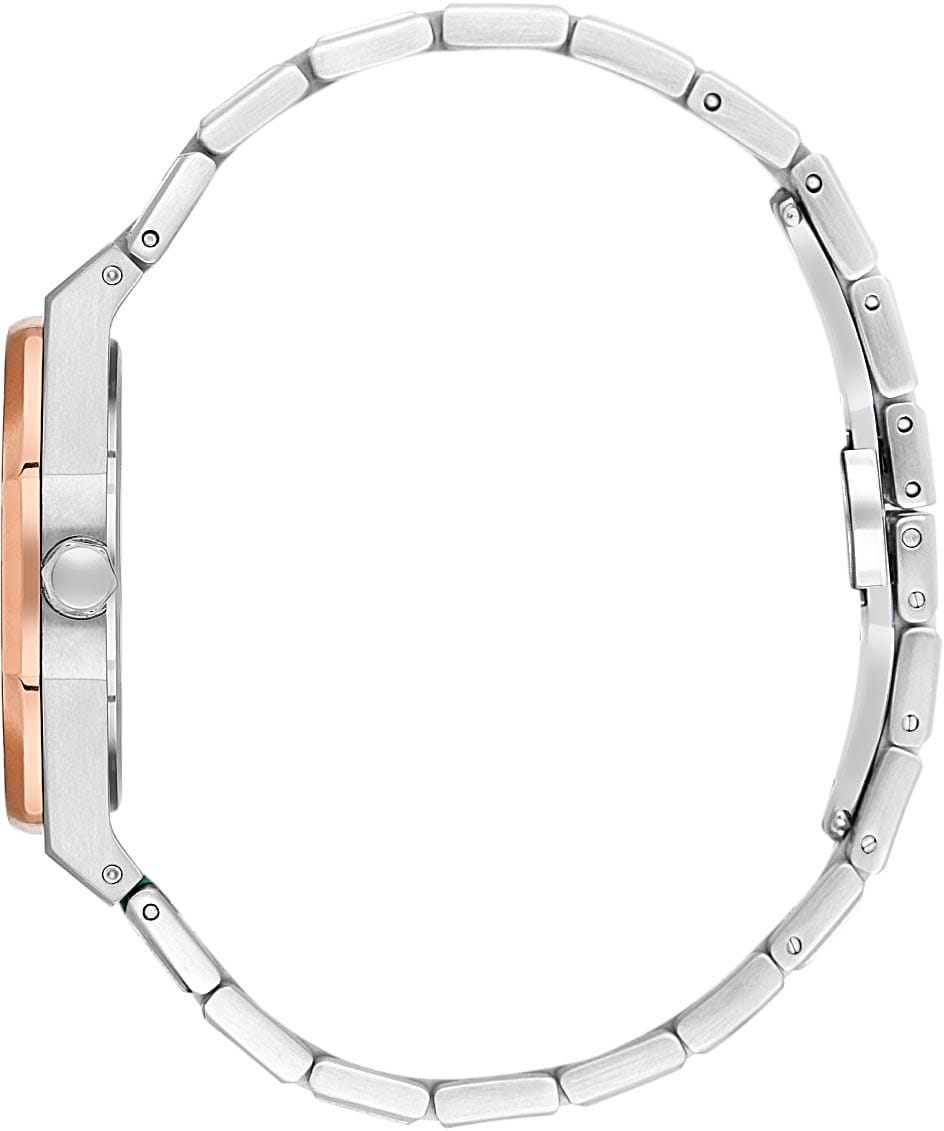 Женские кварцевые часы Santa Barbara Polo & Racquet Club Luxury SB.1.10554-5 — это стильный аксессуар, подчеркивающий индивидуальность. Изысканный корпус диаметром 34 мм выполнен из нержавеющей стали 316L с безелемБезельВнешний ободок, закрепляющий стекло. В спортивных часах так называется поворотное кольцо с делениями на циферблате, выполняет роль таймера – замеряет отрезки времени на шкале. Неподвижный безель – элемент декора. Однонаправленно вращающийся безель на дайверских часах позволяет фиксировать моменты погружения и выныривания на поверхность. с IP-покрытиемIP-покрытиеМетод ионного напыления. Демонстрирует повышенную устойчивость к истиранию, окислению и химическим веществам. Под воздействием высокого давления и температуры около 1500°C молекулы металла надёжно соединяются с частицами корпуса часов., украшенным кристаллами. Изящный циферблат дополнен накладными метками в виде штрихов, а также фирменным логотипом. Стрелки и метки с люминесцентным покрытиемЛюминесцентное покрытиеПозволяет считывать показания времени в темноте. Производители наносят на стрелки, часовые индексы, безель или поверхность циферблата светонакопительный состав, дающий холодное свечение., обеспечивающим хорошую читаемость в темноте. Защиту циферблата обеспечивает минеральное стеклоМинеральное стеклоМинеральное стекло представляет собой искусственно выращенный минерал кварца. Такое стекло отличается особой устойчивостью к повреждениям и царапинам. Уступает по некоторым качествам сапфировому стеклу. с сапфировым покрытием, устойчивое к мелким механическим повреждениям. Часы оснащены надежным стальным браслетом с частичным IP-покрытиемIP-покрытиеМетод ионного напыления. Демонстрирует повышенную устойчивость к истиранию, окислению и химическим веществам. Под воздействием высокого давления и температуры около 1500°C молекулы металла надёжно соединяются с частицами корпуса часов. с застёжкой «бабочка»Застёжка "бабочка"Такой вид застёжки дополняется предохранителями, помогающими избежать случайного раскрытия браслета. Обладают изящным исполнением. . Окошко даты находится в положении 3 часа. Водонепроницаемость 50 м позволяет использовать часы в повседневных условиях. Идеальный выбор для тех, кто ценит элегантный дизайн и качество.
