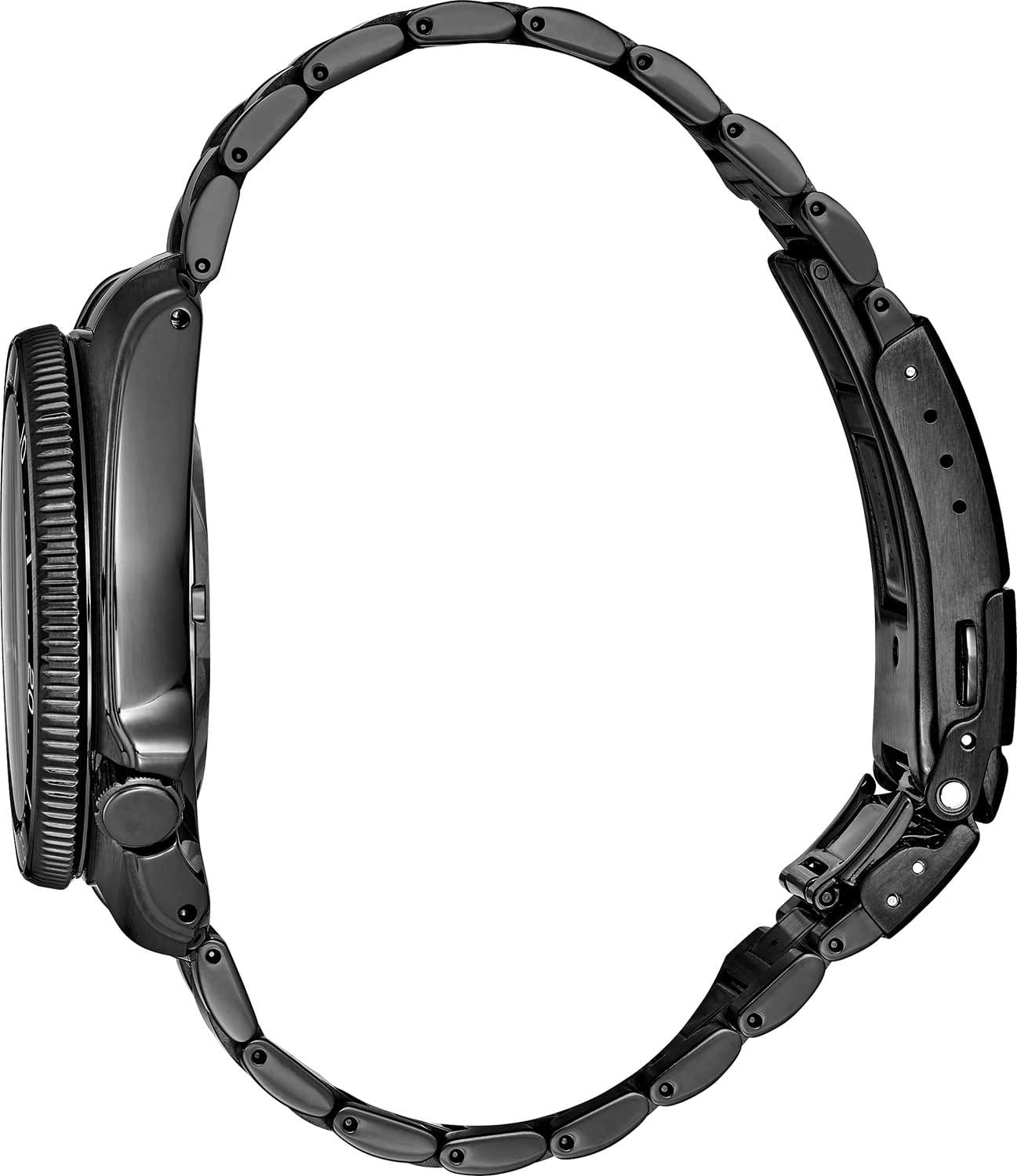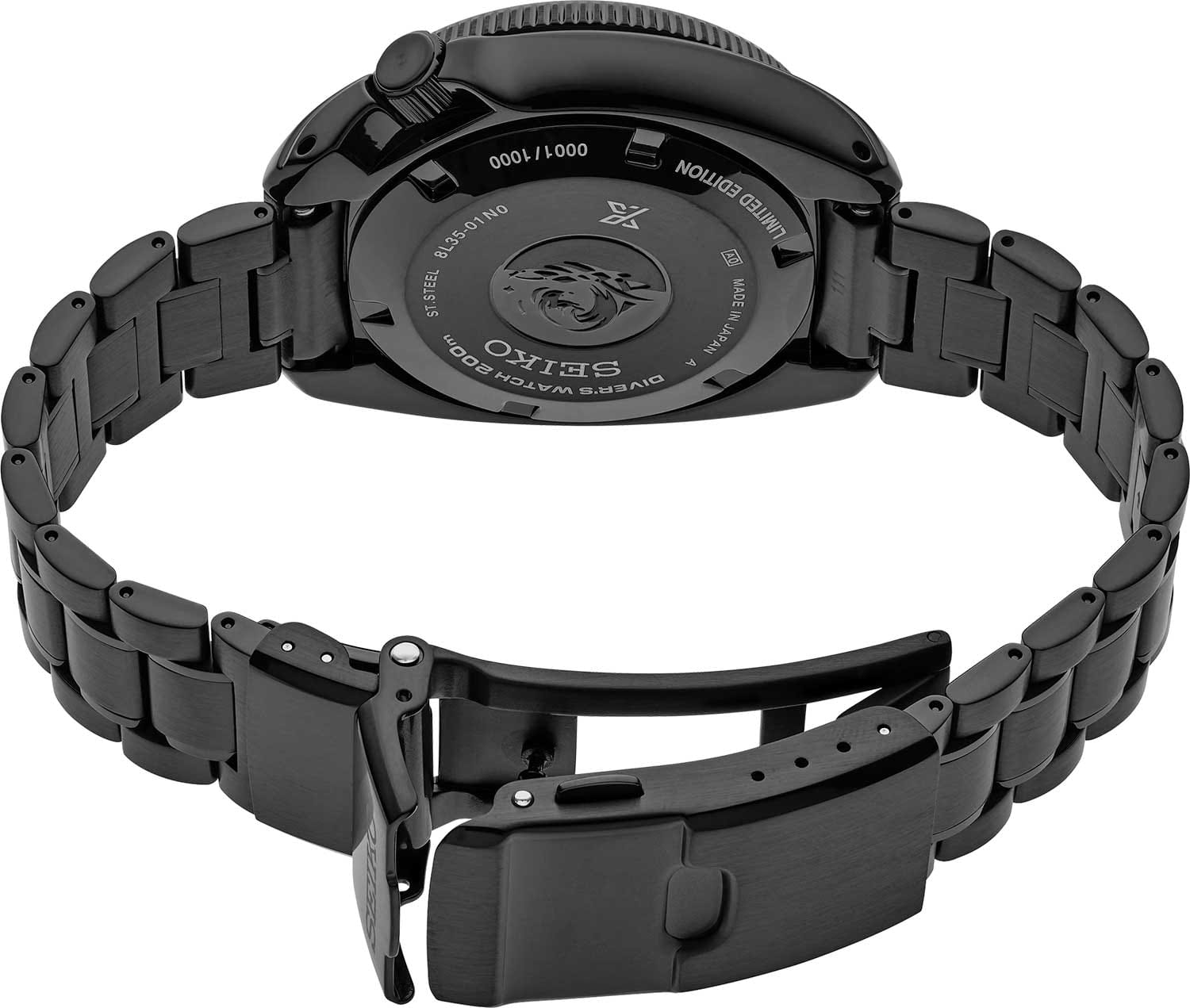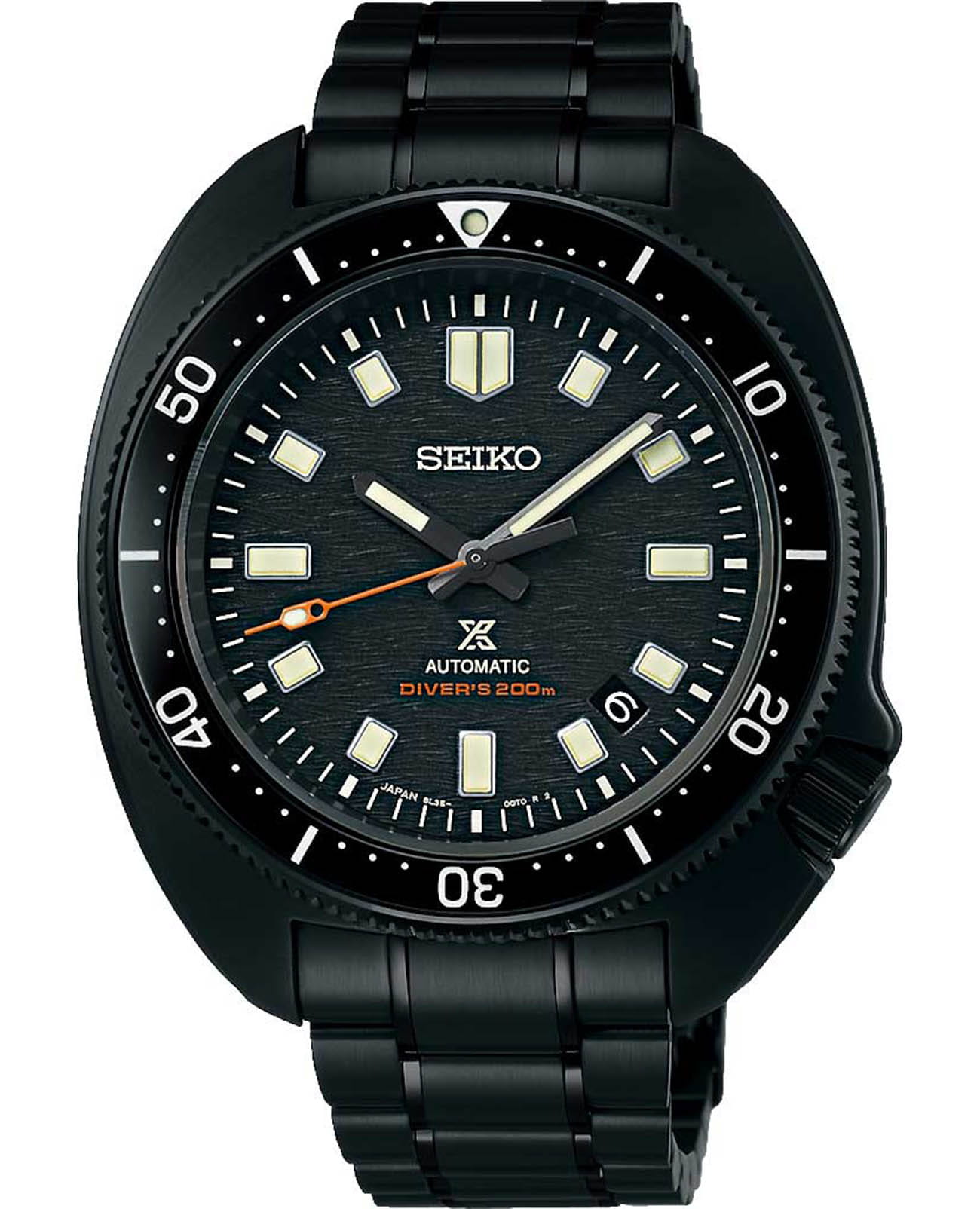 Мужские механические часы с автоподзаводом Seiko — это современная интерпретация легендарных дайверских моделей 1970-х годов, выпущенная ограниченной серией — всего 1000 экземпляров. Корпус диаметром 44 мм и толщиной 13 мм выполнен из стали с PVD-покрытиемPVDУльтратонкое покрытие наносится в технике вакуумного напыления, сочетает в себе нитрид титана особой прочности со слоем золота или оксида хрома. Несёт в себе декоративную или защитную функцию.. Циферблат чёрного цвета оформлен штрихами и логотипом бренда. Окошко даты расположено между 4 и 5 часами. Стрелки и метки с люминесцентным покрытиемЛюминесцентное покрытиеПозволяет считывать показания времени в темноте. Производители наносят на стрелки, часовые индексы, безель или поверхность циферблата светонакопительный состав, дающий холодное свечение. LumiBrite, обеспечивающим высокую читаемость в темноте. Циферблат защищён выпуклым сапфировым стекломСапфировое стеклоПрочный и надёжный материал из кристалла сапфира синтетического происхождения, характеризующийся особой твёрдостью и устойчивостью к царапинам и повреждениям. с антибликовым покрытиемАнтибликовое покрытиеСлой оксида металла в 0,13-0,3 микрон, благодаря которому стекло часов не бликует и не отражает свет. Антибликовое покрытие уменьшает отражение света в 10 раз, обеспечивая отличную читаемость показателей циферблата. на внутренней поверхности. Механизм — автоматический калибр 8L35 (26 камней, частота 28 800 полуколебаний в час, запас хода до 50 часов) с возможностью ручного завода и функцией . БезельБезельВнешний ободок, закрепляющий стекло. В спортивных часах так называется поворотное кольцо с делениями на циферблате, выполняет роль таймера – замеряет отрезки времени на шкале. Неподвижный безель – элемент декора. Однонаправленно вращающийся безель на дайверских часах позволяет фиксировать моменты погружения и выныривания на поверхность. — однонаправленный, вращающийся, с рифлёной поверхностью. Завинчивающаяся задняя крышка и заводная головка с защитой на позиции 4 часов повышают надёжность. Часы оснащены стальным браслетом с PVD-покрытиемPVDУльтратонкое покрытие наносится в технике вакуумного напыления, сочетает в себе нитрид титана особой прочности со слоем золота или оксида хрома. Несёт в себе декоративную или защитную функцию. и тройной раскладной застёжкой с системой блокировки. В комплекте — сменный силиконовый ремешок. Водонепроницаемость 200 м позволяет использовать часы для профессионального плавания и дайвинга. Идеальный выбор для тех, кто ценит историю, мощный дизайн и японское качество.