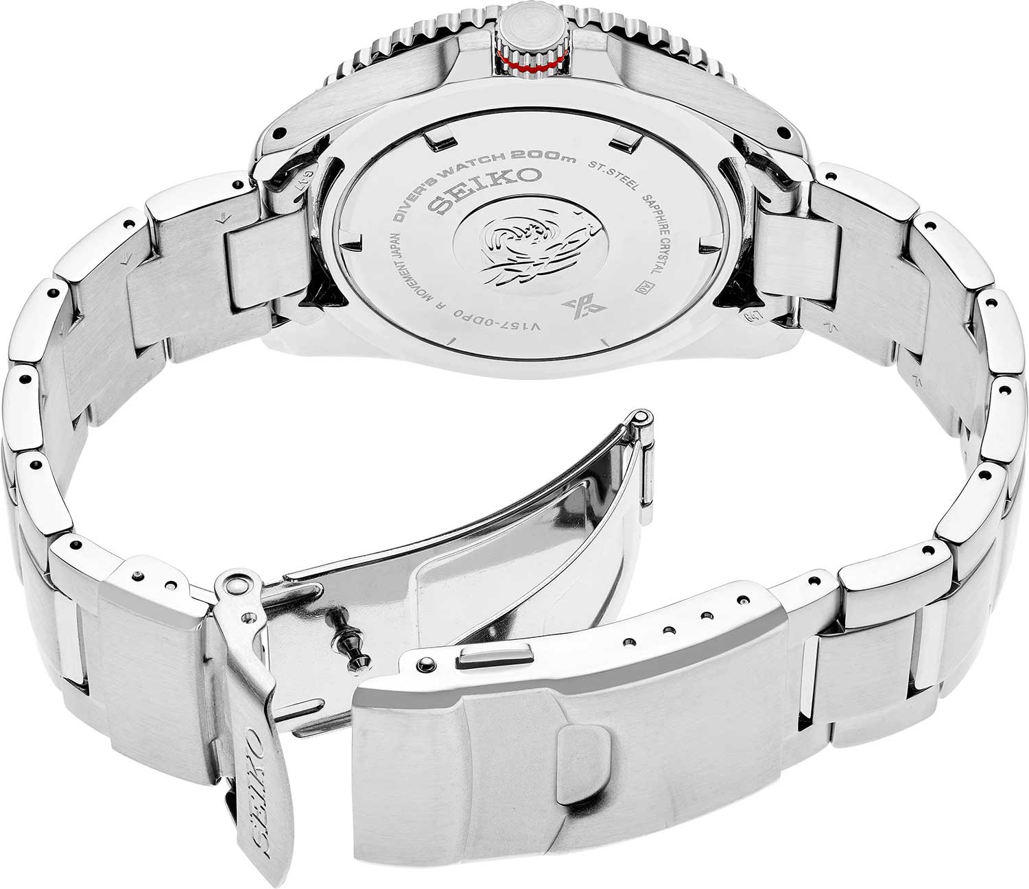 Мужские наручные часы Seiko Prospex SNE589 из коллекции Prospex сочетают в себе спортивный дизайн и надежность современных технологий. Модель обладает круглым корпусом диаметром 42,8 мм, изготовленным из нержавеющей стали, что обеспечивает высокую устойчивость к внешним воздействиям . Защита циферблата выполнена с использованием сапфирового стеклаСапфировое стеклоПрочный и надёжный материал из кристалла сапфира синтетического происхождения, характеризующийся особой твёрдостью и устойчивостью к царапинам и повреждениям., устойчивого к появлению царапин и обладающего высокой прозрачностью . БезельБезельВнешний ободок, закрепляющий стекло. В спортивных часах так называется поворотное кольцо с делениями на циферблате, выполняет роль таймера – замеряет отрезки времени на шкале. Неподвижный безель – элемент декора. Однонаправленно вращающийся безель на дайверских часах позволяет фиксировать моменты погружения и выныривания на поверхность. с PVD-покрытиемPVDУльтратонкое покрытие наносится в технике вакуумного напыления, сочетает в себе нитрид титана особой прочности со слоем золота или оксида хрома. Несёт в себе декоративную или защитную функцию.. Часы оснащены системой Solar, которая не требует замены батарейки и обеспечивает запас хода до 10 месяцев при полной зарядке аккумулятора . Кварцевый механизм с калибром V157 гарантирует высокую точность работы, а функция EOLEOLПредставляет собой систему, уведомляющую владельца часов о необходимости замены элемента питания. За 2 недели до полного разряда батарейки секундная стрелка перестаёт ходить чётко и начинает перепрыгивать на 3-4 деления. позволяет контролировать уровень заряда аккумулятора . Циферблат дополнен люминесцентным покрытиемЛюминесцентное покрытиеПозволяет считывать показания времени в темноте. Производители наносят на стрелки, часовые индексы, безель или поверхность циферблата светонакопительный состав, дающий холодное свечение., обеспечивающим видимость в темное время суток. Водонепроницаемость модели достигает 200 метров (WR200), что делает ее подходящей для плавания, ныряния и других водных видов спорта, включая погружение с аквалангом. Браслет выполнен из нержавеющей стали на раскладной застёжкеРаскладная застёжкаТакой тип застёжки используется только на браслетах из металла. Она никогда не раскрывается полностью, происходит разделение на 2 и более частей. Раскладывающая застёжка снизит вероятность потери часов к минимуму., что обеспечивает комфортное ношение и долговечность.
