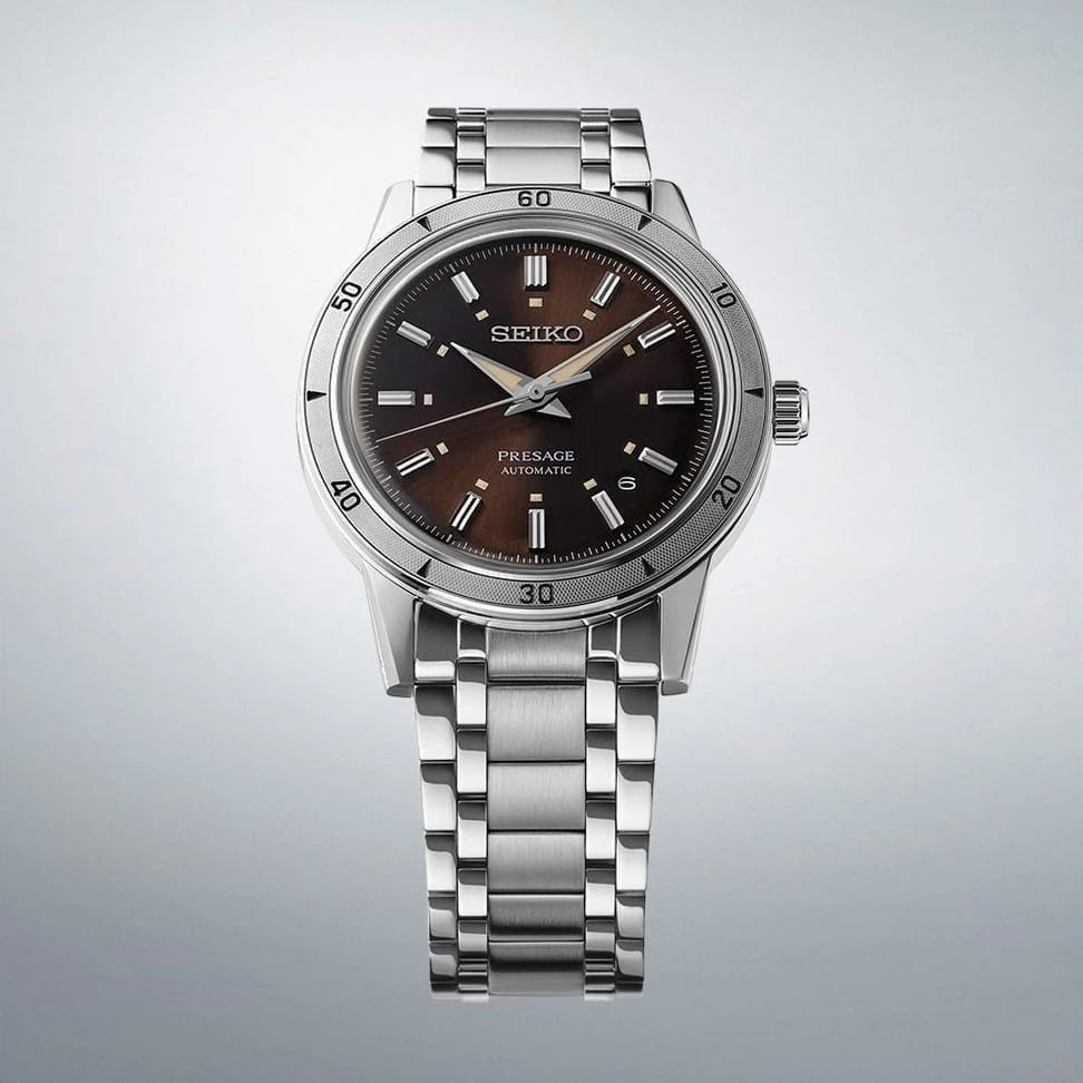 Мужские наручные часы Seiko SRPL09J1 из коллекции Presage Style 60s сочетают в себе классический дизайн и надежность современных технологий. Модель обладает круглым корпусом диаметром 40 мм, изготовленным из нержавеющей стали, что обеспечивает высокую устойчивость к внешним воздействиям . Толщина корпуса составляет 12 мм, а для защиты используется минеральное стеклоМинеральное стеклоМинеральное стекло представляет собой искусственно выращенный минерал кварца. Такое стекло отличается особой устойчивостью к повреждениям и царапинам. Уступает по некоторым качествам сапфировому стеклу. Hardlex Crystal, обеспечивающее прочную защиту от царапин. Браслет также выполнен из нержавеющей стали с раскладной застежкойРаскладная застёжкаТакой тип застёжки используется только на браслетах из металла. Она никогда не раскрывается полностью, происходит разделение на 2 и более частей. Раскладывающая застёжка снизит вероятность потери часов к минимуму., гарантирующей комфортное ношение . Циферблат черного цвета украшен текстурой, которая подчеркивает элегантный стиль модели. Часы оснащены функцией отображения даты на позиции между «4 и 5 часами» . Модель работает на автоматическом механизме с калибром 4R35, который включает 23 камня и обладает запасом хода до 41 часа . Водонепроницаемость составляет WR 50, что позволяет защитить корпус от случайных брызг и кратковременного контакта с водой . Вдохновленные культурой 1960-х годов, эти часы демонстрируют уникальный стиль и внимание к деталям, сохраняя при этом практичность для повседневного использования.