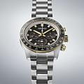 Модель Seiko SSC941P1 из коллекции Prospex Speedtimer — это спортивный солнечный хронограф, сочетающий ретро-дизайн и современные технологии. Корпус диаметром 41,4 мм выполнен из нержавеющей стали, оснащён завинчивающейся задней крышкой и головкой, что обеспечивает водозащиту до 100 метров. Алюминиевый фиксированный тахиметрический безельТахиметрРазмеченная шкала, располагается на ободке или безеле часов. Тахиметр позволяет рассчитать скорость на определённом участке пути, расстояние измеряется в километрах или милях. позволяет производить замеры скорости. Чёрный циферблат с солнечным финишем украшен тремя золотисто-оформленными счётчиками: 60-минутным хронографом, 24-часовым индикатором и малой секундной стрелкой. Стрелки и метки покрыты люминесцентным покрытиемЛюминесцентное покрытиеПозволяет считывать показания времени в темноте. Производители наносят на стрелки, часовые индексы, безель или поверхность циферблата светонакопительный состав, дающий холодное свечение. LumiBrite, обеспечивая отличную читаемость в темноте. Циферблат защищён выпуклым сапфировым стекломСапфировое стеклоПрочный и надёжный материал из кристалла сапфира синтетического происхождения, характеризующийся особой твёрдостью и устойчивостью к царапинам и повреждениям. с антибликовым покрытиемАнтибликовое покрытиеСлой оксида металла в 0,13-0,3 микрон, благодаря которому стекло часов не бликует и не отражает свет. Антибликовое покрытие уменьшает отражение света в 10 раз, обеспечивая отличную читаемость показателей циферблата., устойчивым к царапинам и бликам. Внутри установлен солнечный кварцевый механизм Seiko V192 с функциями хронографаХронографФункция позволяет измерять отрезки времени с особой точностью: часы, минуты, секунды. Верным признаком хронографа является наличие на циферблате 3 дополнительных окошек-счётчиков., 24-часовым индикатором, датой и индикатором запаса хода. Полного заряда достаточно для работы до 6 месяцев. Браслет выполнен из нержавеющей стали и снабжён надёжной раскладной застёжкойРаскладная застёжкаТакой тип застёжки используется только на браслетах из металла. Она никогда не раскрывается полностью, происходит разделение на 2 и более частей. Раскладывающая застёжка снизит вероятность потери часов к минимуму. с кнопками. Seiko SSC941P1 — универсальный и выразительный хронограф, в котором точность и стиль сочетаются с практичностью и удобством солнечного питания.