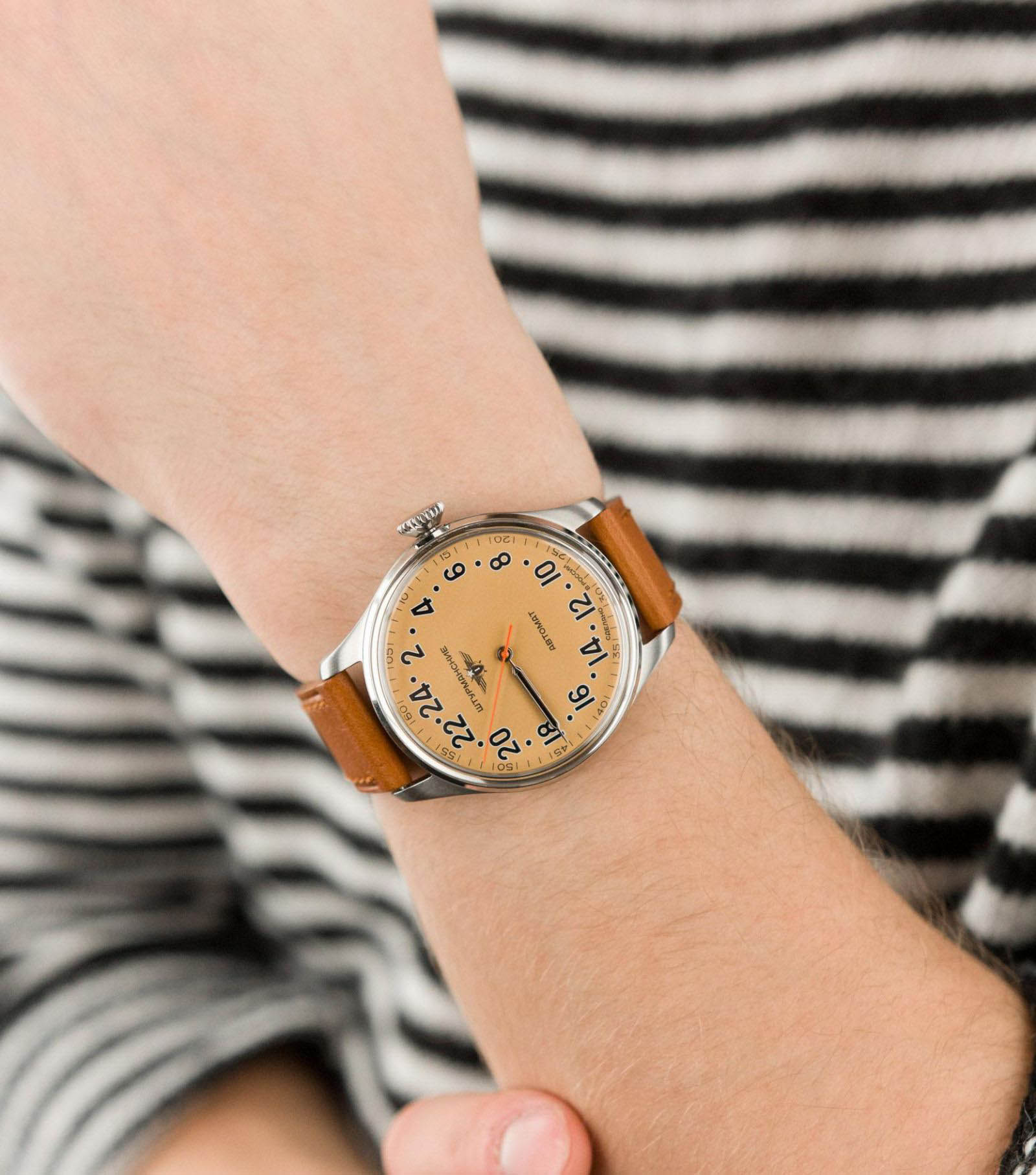 Штурманские мужские российские механические часы Штурманские Наследие Арктика 2431/6821344, механический механизм (автоматический калибр) с высокой точностью. Класс водозащиты: 30 метров, позволит защитить корпус от случайных брызг или капель дождя. Корпус часов изготовлен из стали. Кожаный ремешок на стандартной застёжке. В механизме 32 камня. Запас хода 31 час. Возможность ручного завода. 24-часовой формат отображения времени, часовая стрелка делает один оборот за сутки. Стрелки и метки с люминесцентным покрытиемЛюминесцентное покрытиеПозволяет считывать показания времени в темноте. Производители наносят на стрелки, часовые индексы, безель или поверхность циферблата светонакопительный состав, дающий холодное свечение..