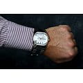 Часы Слава Танк 4320690/100-2427 — это элегантное сочетание ретро стиля и современных технологий, способное подчеркнуть изысканный вкус владельца и дополнить любой образ. Эта лимитированная серия, состоящая из 300 экземпляров, является современной интерпретацией легендарного выпуска часов, созданного специально для делегатов XXV съезда КПСС в 1975 году. Механизм часов с автоподзаводом оснащен калибром «Слава 2427». Запас хода составляет 31 час, что обеспечивает надежность и долговечность в использовании. Корпус и браслет с застежкой «бабочка»Застёжка "бабочка"Такой вид застёжки дополняется предохранителями, помогающими избежать случайного раскрытия браслета. Обладают изящным исполнением. выполнены из высококачественной стали 904L, придающей модели прочность и устойчивость к внешним воздействиям. Диаметр корпуса составляет 42 мм, а толщина — 13 мм, что делает часы удобными в ношении. Белый циферблат с метками в виде штрихов защищен выпуклым сапфировым стекломСапфировое стеклоПрочный и надёжный материал из кристалла сапфира синтетического происхождения, характеризующийся особой твёрдостью и устойчивостью к царапинам и повреждениям., стойким к царапинам. Стрелки и метки обладают люминесцентным покрытиемЛюминесцентное покрытиеПозволяет считывать показания времени в темноте. Производители наносят на стрелки, часовые индексы, безель или поверхность циферблата светонакопительный состав, дающий холодное свечение., которое светится в темноте после зарядки на свету, обеспечивая отличную видимость в любых условиях. Календарь с указанием числа и дня недели расположен в положении 3 часа, добавляя функциональности модели. Каждые часы имеют индивидуальный серийный номер, выгравированный на боковой части корпуса, что подчеркивает их уникальность. Прозрачная задняя крышка позволяет наблюдать за работой механизма, а надежный стальной браслет с раскладывающейся застежкой обеспечивает комфорт и безопасность при носке. Часы обладают водозащитой 100WR, что делает их идеальными для активного образа жизни.