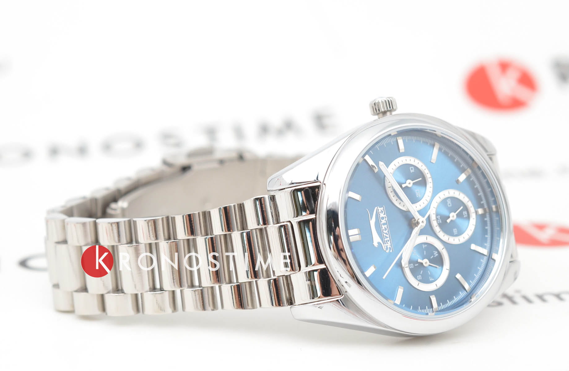 Женские наручные часы Slazenger SL.09.2063.4.06 сочетают в себе классический дизайн и высокое качество исполнения. Модель обладает круглым корпусом диаметром 36 мм, изготовленным из суперметалла, что обеспечивает устойчивость к внешним воздействиям. Браслет выполнен из суперметалла на раскладной застёжкеРаскладная застёжкаТакой тип застёжки используется только на браслетах из металла. Она никогда не раскрывается полностью, происходит разделение на 2 и более частей. Раскладывающая застёжка снизит вероятность потери часов к минимуму.. Синий циферблат украшен логотипом бренда и метками времени. Имеются дополнительные малые циферблаты для отображения даты, дня недели и текущего времени в 24-часовом формате. Для защиты используется минеральное стеклоМинеральное стеклоМинеральное стекло представляет собой искусственно выращенный минерал кварца. Такое стекло отличается особой устойчивостью к повреждениям и царапинам. Уступает по некоторым качествам сапфировому стеклу., обеспечивающее прочную защиту от царапин. Стрелки и метки имеют люминесцентное покрытиеЛюминесцентное покрытиеПозволяет считывать показания времени в темноте. Производители наносят на стрелки, часовые индексы, безель или поверхность циферблата светонакопительный состав, дающий холодное свечение., что позволяет легко читать время в темноте. Часы работают на японском кварцевом механизме, который обеспечивает точность хода без необходимости подзаводки. Водонепроницаемость часов составляет 3 атмосферы (WR30), что позволяет защитить корпус от случайных брызг или капель дождя.