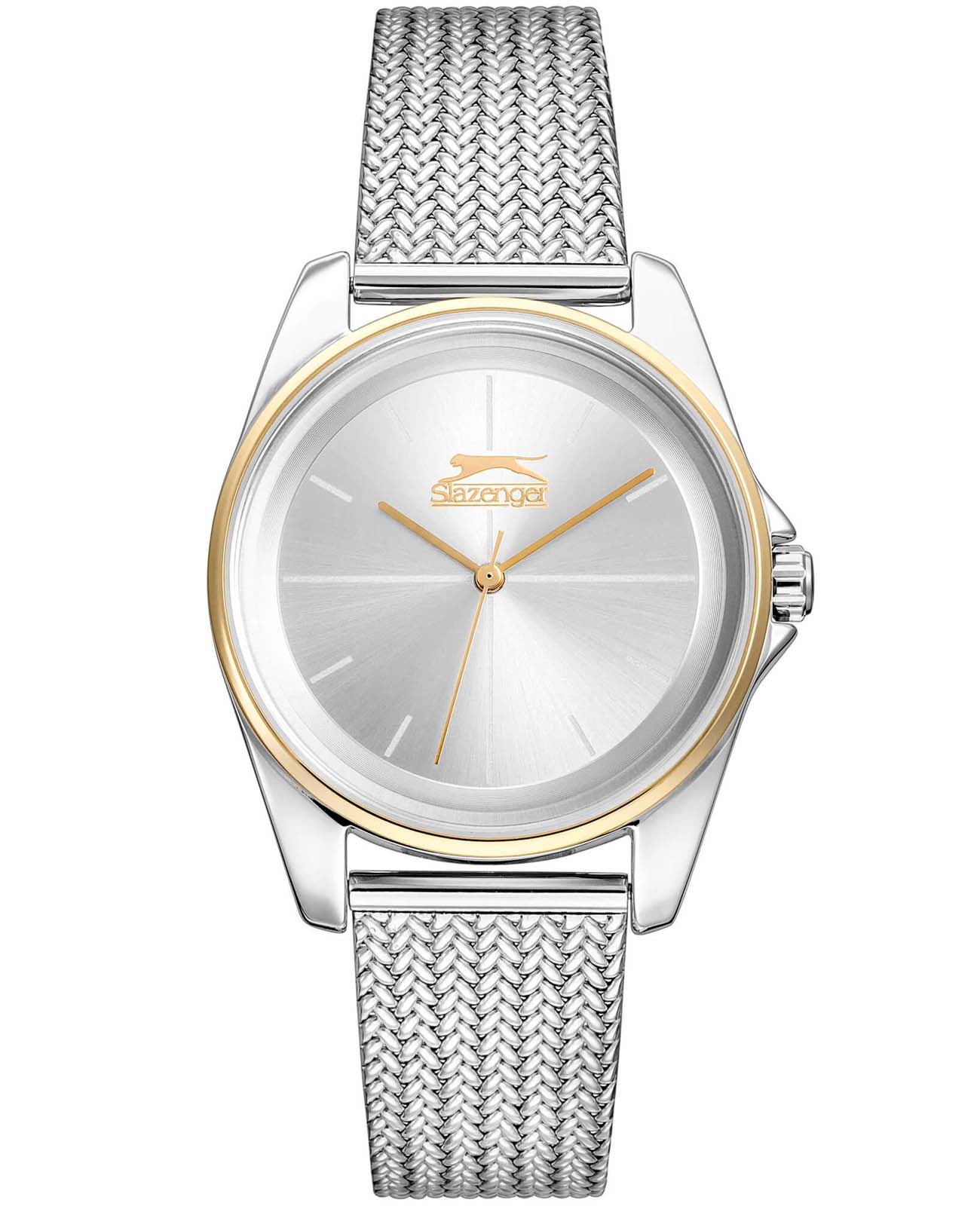 Женские наручные часы Slazenger SL.09.2074.3.03 сочетают в себе элегантный дизайн и функциональность. Модель обладает круглым корпусом диаметром 327 мм, изготовленным из суперметалла. БезельБезельВнешний ободок, закрепляющий стекло. В спортивных часах так называется поворотное кольцо с делениями на циферблате, выполняет роль таймера – замеряет отрезки времени на шкале. Неподвижный безель – элемент декора. Однонаправленно вращающийся безель на дайверских часах позволяет фиксировать моменты погружения и выныривания на поверхность. с IP-покрытиемIP-покрытиеМетод ионного напыления. Демонстрирует повышенную устойчивость к истиранию, окислению и химическим веществам. Под воздействием высокого давления и температуры около 1500°C молекулы металла надёжно соединяются с частицами корпуса часов., что обеспечивает высокую устойчивость к внешним воздействиям. Браслет выполнен из того же материала на раскладном замкеРаскладной замокДанный вариант застежки используется только на часах с металлическим браслетом. Отличительная особенность такого крепления в том, что длина браслета становится универсальной и вы можете самостоятельно отрегулировать нужный вам размер – застежка просто двигается по браслету часов., гарантирующей комфортное ношение и безопасность. Для защиты используется минеральное стеклоМинеральное стеклоМинеральное стекло представляет собой искусственно выращенный минерал кварца. Такое стекло отличается особой устойчивостью к повреждениям и царапинам. Уступает по некоторым качествам сапфировому стеклу., обеспечивающее прочную защиту от царапин. Часы работают на кварцевом механизме, что гарантирует точное время без необходимости подзаводки. Водонепроницаемость достигает 3 атмосфер (WR30), что позволяет использовать их при контакте с брызгами воды, однако не рекомендуется для плавания или дайвинга.
