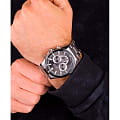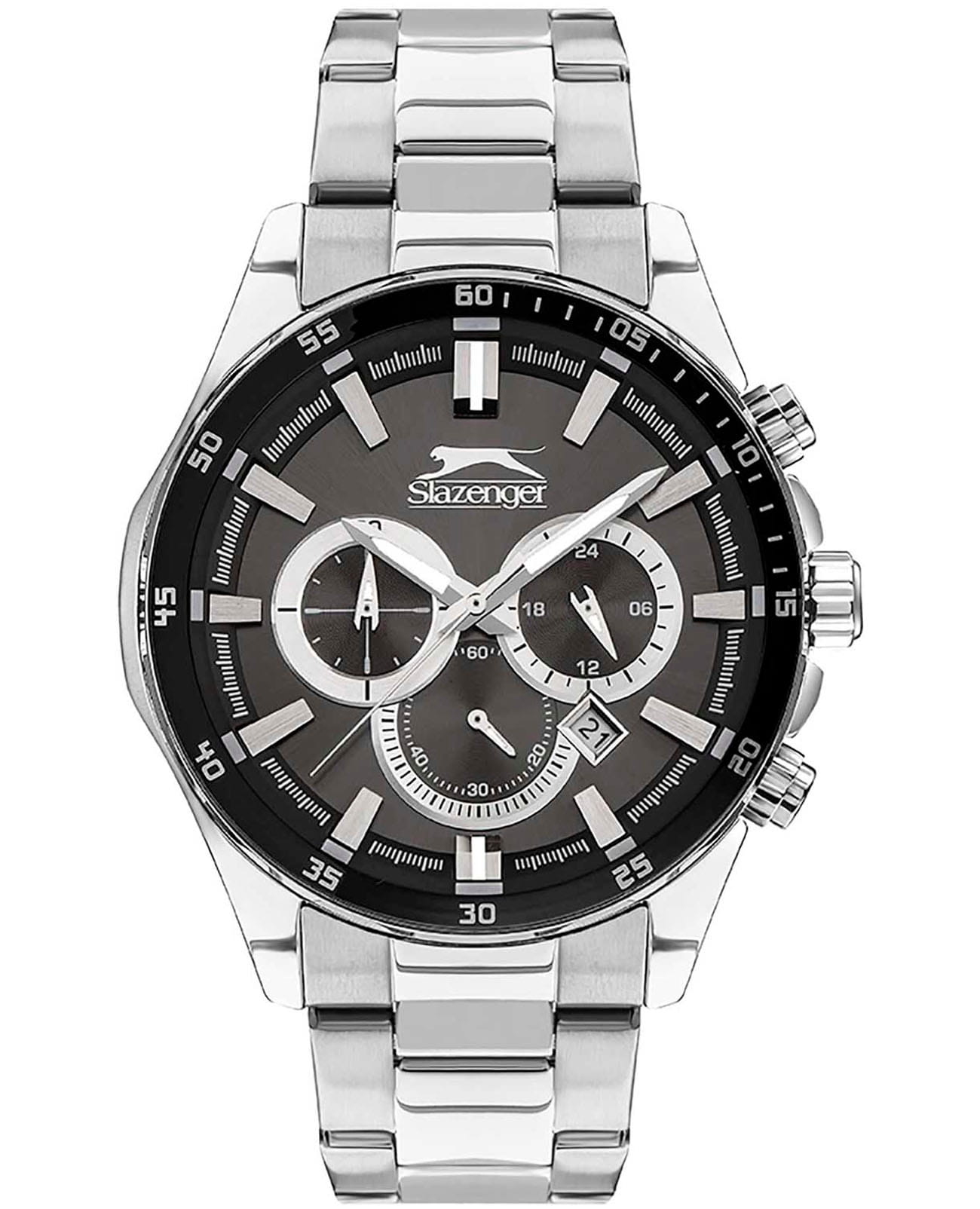 Мужские наручные часы-хронографХронографФункция позволяет измерять отрезки времени с особой точностью: часы, минуты, секунды. Верным признаком хронографа является наличие на циферблате 3 дополнительных окошек-счётчиков. Slazenger SL.09.2078.2.01 сочетают в себе классический дизайн и надежность современных технологий. Модель обладает круглым корпусом диаметром 48 мм, изготовленным из стали с серебристым покрытием, что обеспечивает высокую устойчивость к внешним воздействиям. Браслет выполнен из суперметалла с раскладной застежкойРаскладная застёжкаТакой тип застёжки используется только на браслетах из металла. Она никогда не раскрывается полностью, происходит разделение на 2 и более частей. Раскладывающая застёжка снизит вероятность потери часов к минимуму., гарантирующей комфортное ношение и безопасность. БезельБезельВнешний ободок, закрепляющий стекло. В спортивных часах так называется поворотное кольцо с делениями на циферблате, выполняет роль таймера – замеряет отрезки времени на шкале. Неподвижный безель – элемент декора. Однонаправленно вращающийся безель на дайверских часах позволяет фиксировать моменты погружения и выныривания на поверхность. с IP-покрытиемIP-покрытиеМетод ионного напыления. Демонстрирует повышенную устойчивость к истиранию, окислению и химическим веществам. Под воздействием высокого давления и температуры около 1500°C молекулы металла надёжно соединяются с частицами корпуса часов.. Циферблат серого цвета декорирован стрелками с функцией хронографа, позволяя измерять короткие промежутки времени, а также имеет окошко даты для повседневного использования. Для защиты используется минеральное стеклоМинеральное стеклоМинеральное стекло представляет собой искусственно выращенный минерал кварца. Такое стекло отличается особой устойчивостью к повреждениям и царапинам. Уступает по некоторым качествам сапфировому стеклу., обеспечивающее прочную защиту от царапин. Часы работают на кварцевом механизме, что гарантирует точное время без необходимости подзаводки. Водонепроницаемость часов достигает 50 метров (5 атмосфер), что позволяет использовать их во время плавания, однако не рекомендуется для дайвинга или других водных видов спорта. Вес модели составляет 158 грамм, а производитель предоставляет гарантию сроком 12 месяцев. SL.09.2078.2.01 — это стильный аксессуар, который станет отличным дополнением как формального, так и casual образа мужчины.