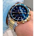 Мужские наручные часы Slazenger SL.09.2091.2.02 сочетают в себе классический дизайн и надежность современных технологий. Модель обладает круглым корпусом диаметром 44 мм, изготовленным из суперметалла, что обеспечивает высокую устойчивость к внешним воздействиям. БезельБезельВнешний ободок, закрепляющий стекло. В спортивных часах так называется поворотное кольцо с делениями на циферблате, выполняет роль таймера – замеряет отрезки времени на шкале. Неподвижный безель – элемент декора. Однонаправленно вращающийся безель на дайверских часах позволяет фиксировать моменты погружения и выныривания на поверхность. с IP-покрытиемIP-покрытиеМетод ионного напыления. Демонстрирует повышенную устойчивость к истиранию, окислению и химическим веществам. Под воздействием высокого давления и температуры около 1500°C молекулы металла надёжно соединяются с частицами корпуса часов., добавляя модели элегантности и защищая поверхность от повреждений. Браслет выполнен из суперметалла с частичным IP-покрытиемIP-покрытиеМетод ионного напыления. Демонстрирует повышенную устойчивость к истиранию, окислению и химическим веществам. Под воздействием высокого давления и температуры около 1500°C молекулы металла надёжно соединяются с частицами корпуса часов. цвета желтого золота с раскладной застежкойРаскладной замокДанный вариант застежки используется только на часах с металлическим браслетом. Отличительная особенность такого крепления в том, что длина браслета становится универсальной и вы можете самостоятельно отрегулировать нужный вам размер – застежка просто двигается по браслету часов., гарантирующей комфортное ношение и безопасность. Циферблат темно-синего цвета выполнен по технологии Sunray (солнечные лучи), декорирован индексами в виде штрихов и логотипом бренда, а стрелки имеют люминесцентное покрытиеЛюминесцентное покрытиеПозволяет считывать показания времени в темноте. Производители наносят на стрелки, часовые индексы, безель или поверхность циферблата светонакопительный состав, дающий холодное свечение., обеспечивающее читаемость времени даже при недостаточной освещенности. Для защиты используется минеральное стеклоМинеральное стеклоМинеральное стекло представляет собой искусственно выращенный минерал кварца. Такое стекло отличается особой устойчивостью к повреждениям и царапинам. Уступает по некоторым качествам сапфировому стеклу., обеспечивающее прочную защиту от царапин. Часы работают на кварцевом механизме, что гарантирует точное время без необходимости подзаводки, и оснащены функцией второго часового поясаВторой часовой поясФункция, позволяющая отображать время двух часовых поясов одновременно., делая их практичными для путешествий. Водонепроницаемость часов достигает 5 атмосфер (WR50), что позволяет использовать их во время плавания, однако они не предназначены для дайвинга или других водных видов спорта. Толщина модели составляет 12 мм, а производитель предоставляет гарантию сроком 12 месяцев. SL.09.2091.2.02 — это стильный аксессуар, который станет отличным дополнением как формального, так и casual образа мужчины.