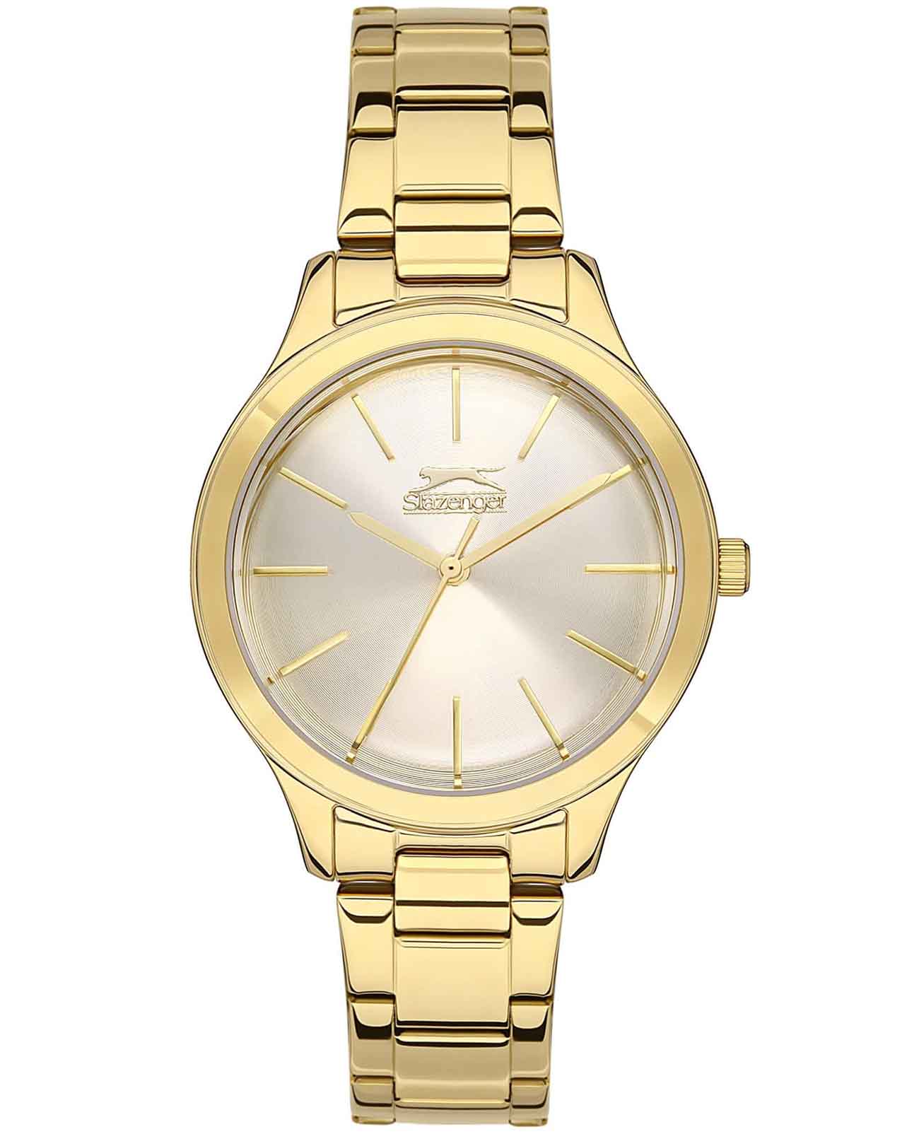 Часы Slazenger SL.09.2101.3.03 станут элегантным дополнением вашего образа. Изящный серебристый циферблат заключен в корпус и безельБезельВнешний ободок, закрепляющий стекло. В спортивных часах так называется поворотное кольцо с делениями на циферблате, выполняет роль таймера – замеряет отрезки времени на шкале. Неподвижный безель – элемент декора. Однонаправленно вращающийся безель на дайверских часах позволяет фиксировать моменты погружения и выныривания на поверхность., выполненные из прочного суперметалла с IP-покрытиемIP-покрытиеМетод ионного напыления. Демонстрирует повышенную устойчивость к истиранию, окислению и химическим веществам. Под воздействием высокого давления и температуры около 1500°C молекулы металла надёжно соединяются с частицами корпуса часов.. Эти женские часы оснащены надежным кварцевым механизмом и защищены от воды на уровне 3 АТМ, что делает их подходящими для повседневного использования. Браслет цвета желтого золота из суперметалла с IP-покрытиемIP-покрытиеМетод ионного напыления. Демонстрирует повышенную устойчивость к истиранию, окислению и химическим веществам. Под воздействием высокого давления и температуры около 1500°C молекулы металла надёжно соединяются с частицами корпуса часов. с раскладной застёжкойРаскладная застёжкаТакой тип застёжки используется только на браслетах из металла. Она никогда не раскрывается полностью, происходит разделение на 2 и более частей. Раскладывающая застёжка снизит вероятность потери часов к минимуму. обеспечивает комфортное прилегание на запястье. Минеральное стеклоМинеральное стеклоМинеральное стекло представляет собой искусственно выращенный минерал кварца. Такое стекло отличается особой устойчивостью к повреждениям и царапинам. Уступает по некоторым качествам сапфировому стеклу. гарантирует защиту от царапин.