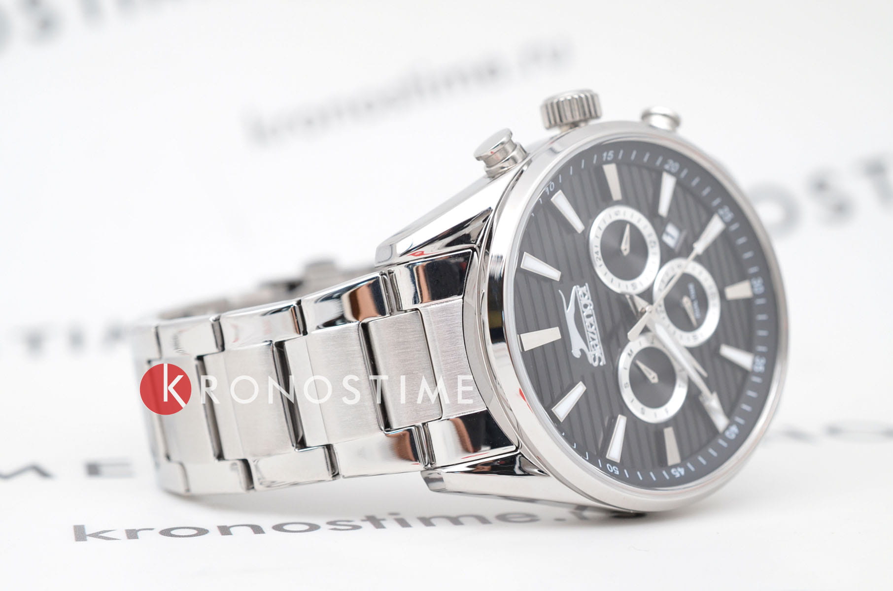 Мужские наручные часы Slazenger SL.09.2111.2.02 сочетают в себе классический дизайн и надежность современных технологий. Модель обладает круглым корпусом диаметром 44 мм, изготовленным из стали, что обеспечивает высокую устойчивость к внешним воздействиям. Браслет выполнен из металла с раскладной застежкойРаскладной замокДанный вариант застежки используется только на часах с металлическим браслетом. Отличительная особенность такого крепления в том, что длина браслета становится универсальной и вы можете самостоятельно отрегулировать нужный вам размер – застежка просто двигается по браслету часов., гарантирующей комфортное ношение и безопасность. Циферблат черного цвета декорирован стрелками с люминесцентным покрытиемЛюминесцентное покрытиеПозволяет считывать показания времени в темноте. Производители наносят на стрелки, часовые индексы, безель или поверхность циферблата светонакопительный состав, дающий холодное свечение., которые обеспечивают читаемость времени даже в условиях недостаточной освещенности. Для защиты используется минеральное стеклоМинеральное стеклоМинеральное стекло представляет собой искусственно выращенный минерал кварца. Такое стекло отличается особой устойчивостью к повреждениям и царапинам. Уступает по некоторым качествам сапфировому стеклу., обеспечивающее прочную защиту от царапин. Часы работают на кварцевом механизме, что гарантирует точное время без необходимости подзаводки. Модель также оснащена дополнительными функциями, такими как второй часовой поясВторой часовой поясФункция, позволяющая отображать время двух часовых поясов одновременно., отображение дня недели и текущего времени в 24-часовом формате, делая ее практичной для повседневного использования и путешествий. Водонепроницаемость часов достигает 5 атмосфер (WR50), что позволяет использовать их во время плавания, однако они не предназначены для дайвинга или других водных видов спорта. Толщина модели составляет 12 мм, а производитель предоставляет гарантию сроком 12 месяцев.